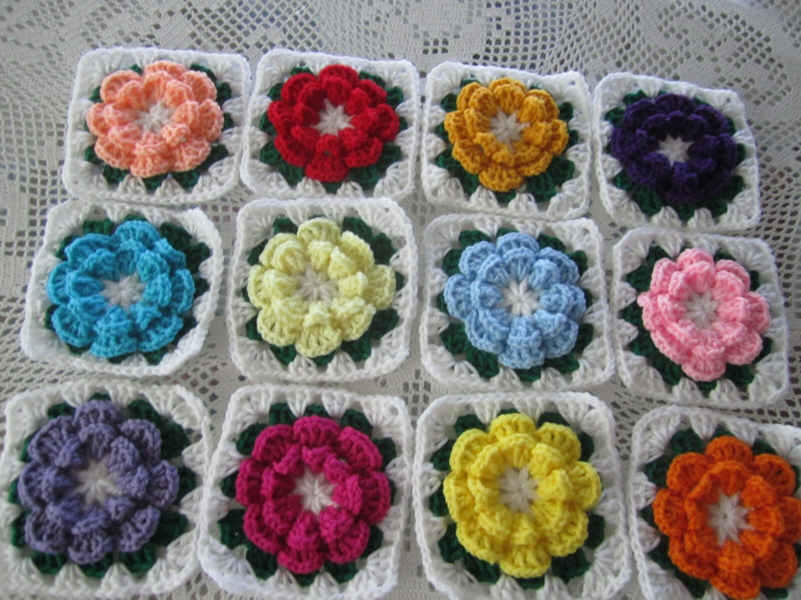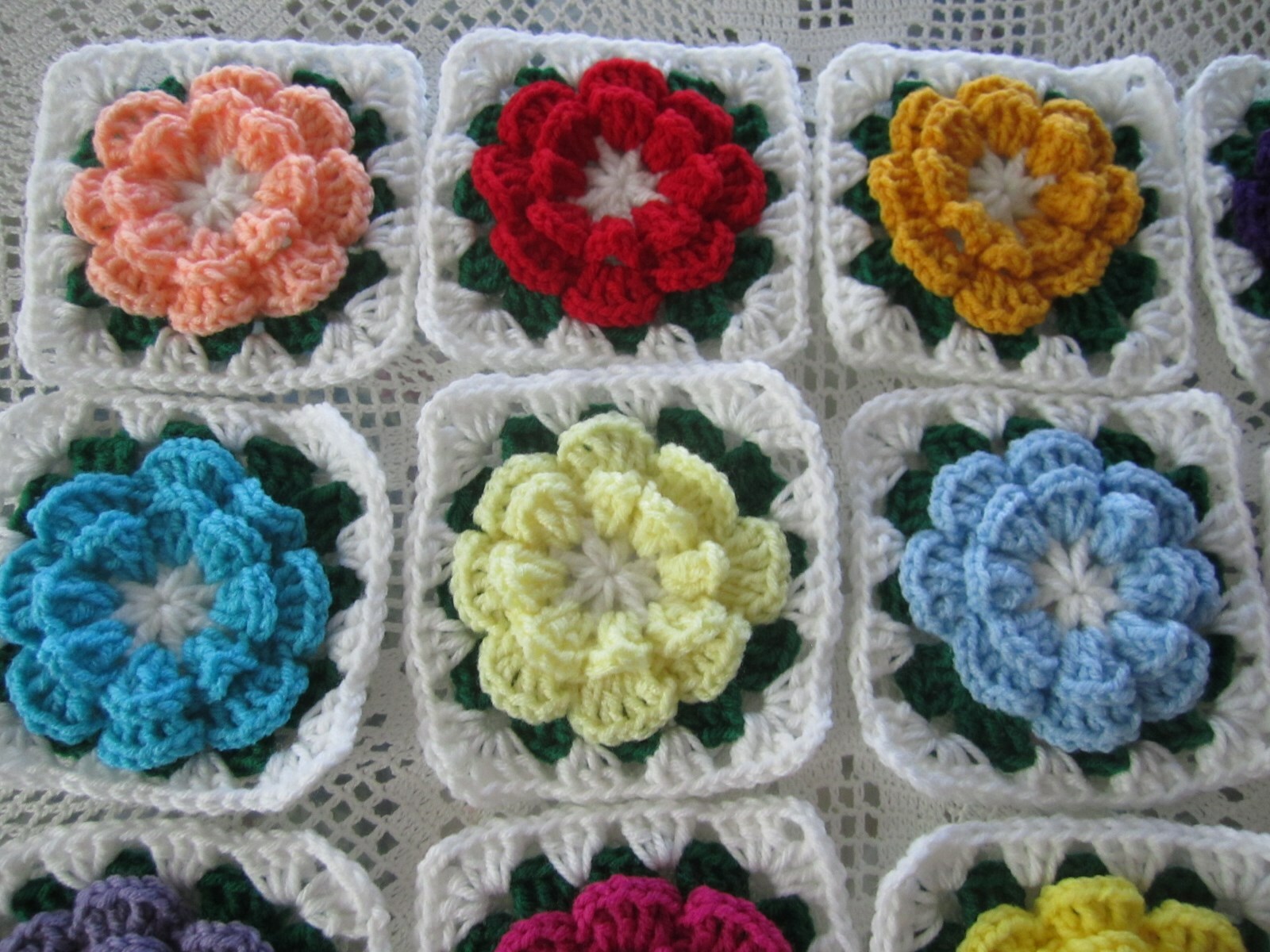 как выглядит 12-5" CROCHETED RAISED FLOWER GRANNY SQUARES 4 AFGHAN, AFGHANS ASSORTED фото