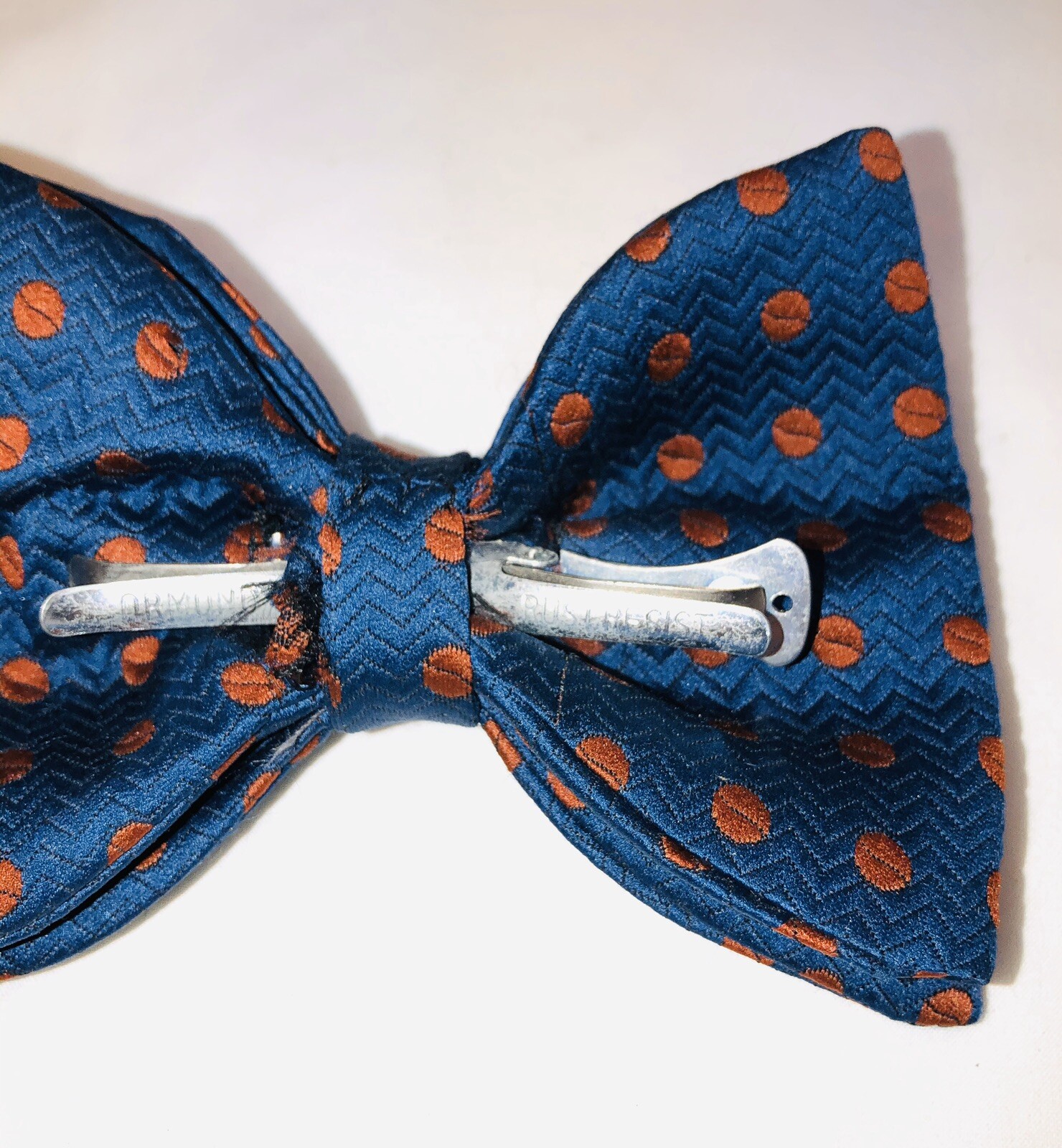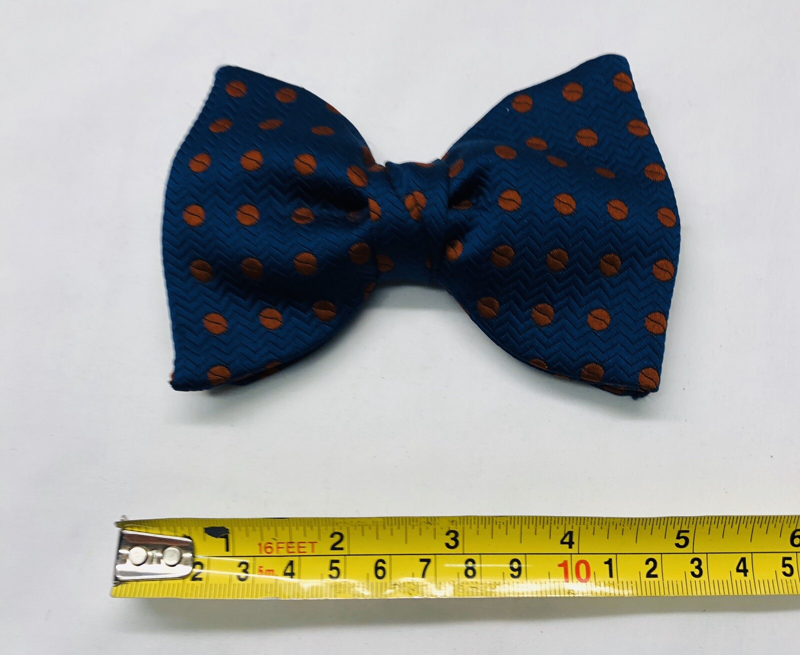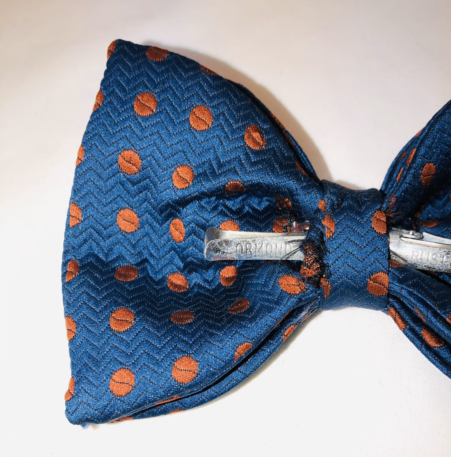 Vintage ORMOND Mens Butterfly Bow Tie Clip on Blue Red Dots 4.50 x 2.75 inch