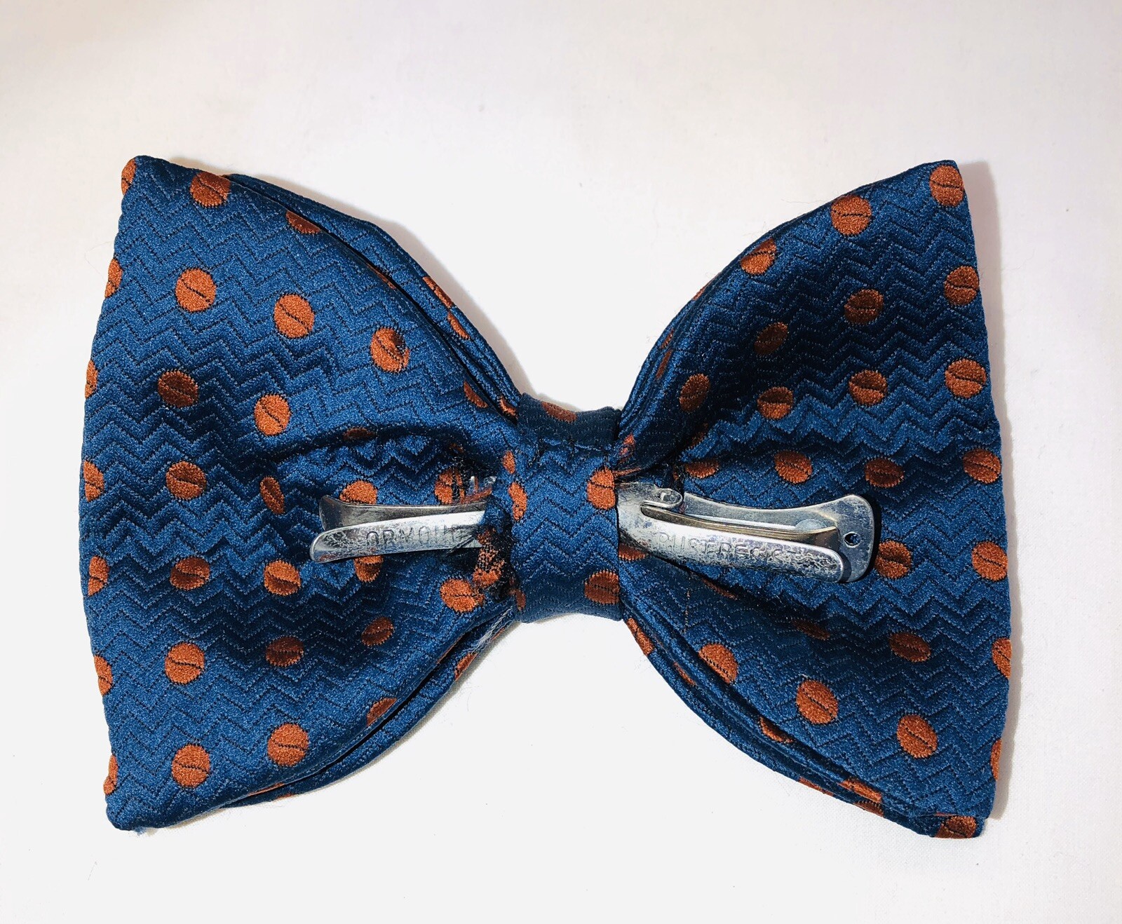 как выглядит Vintage ORMOND Mens Butterfly Bow Tie Clip on Blue Red Dots 4.50 x 2.75 inch фото