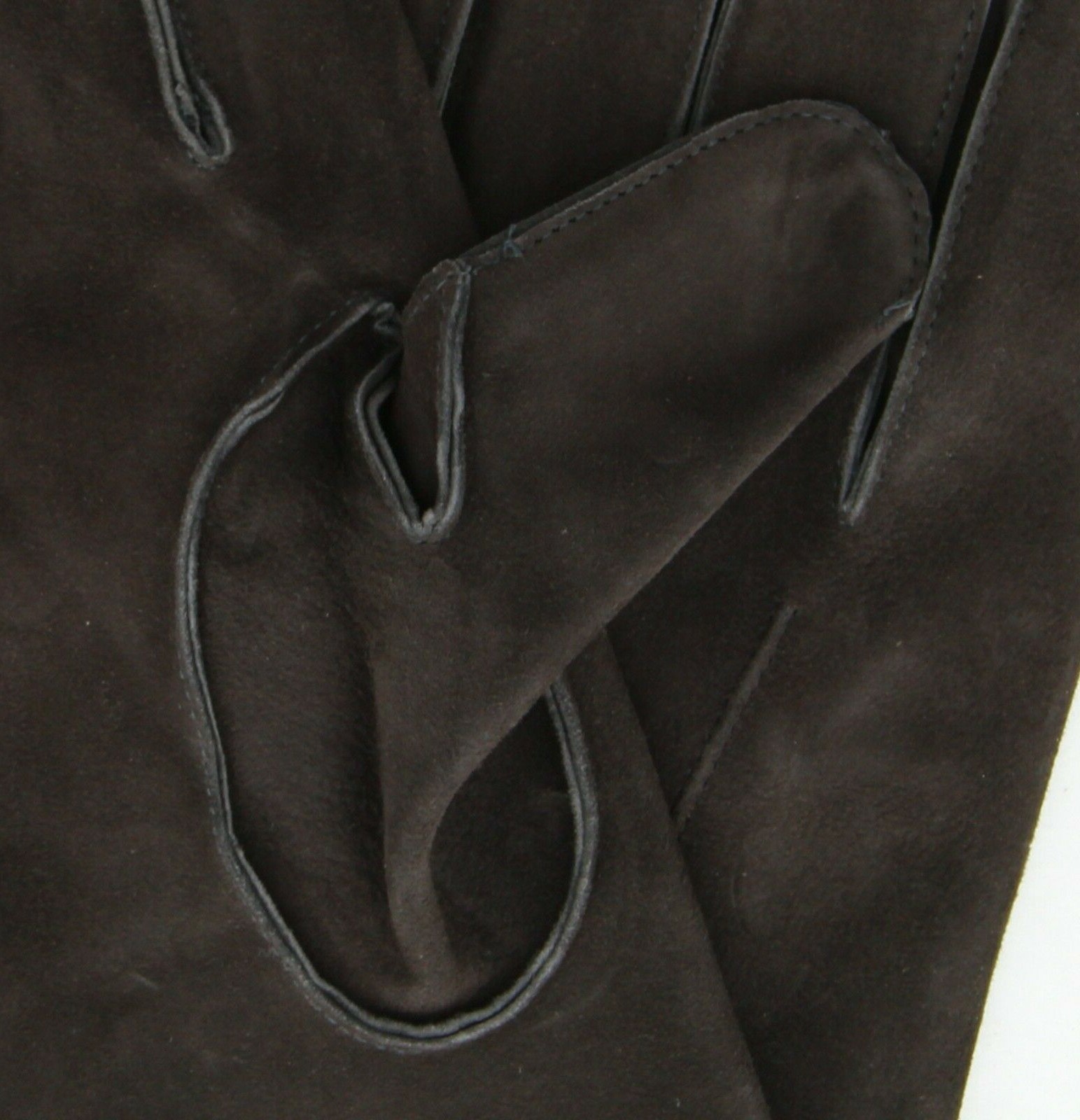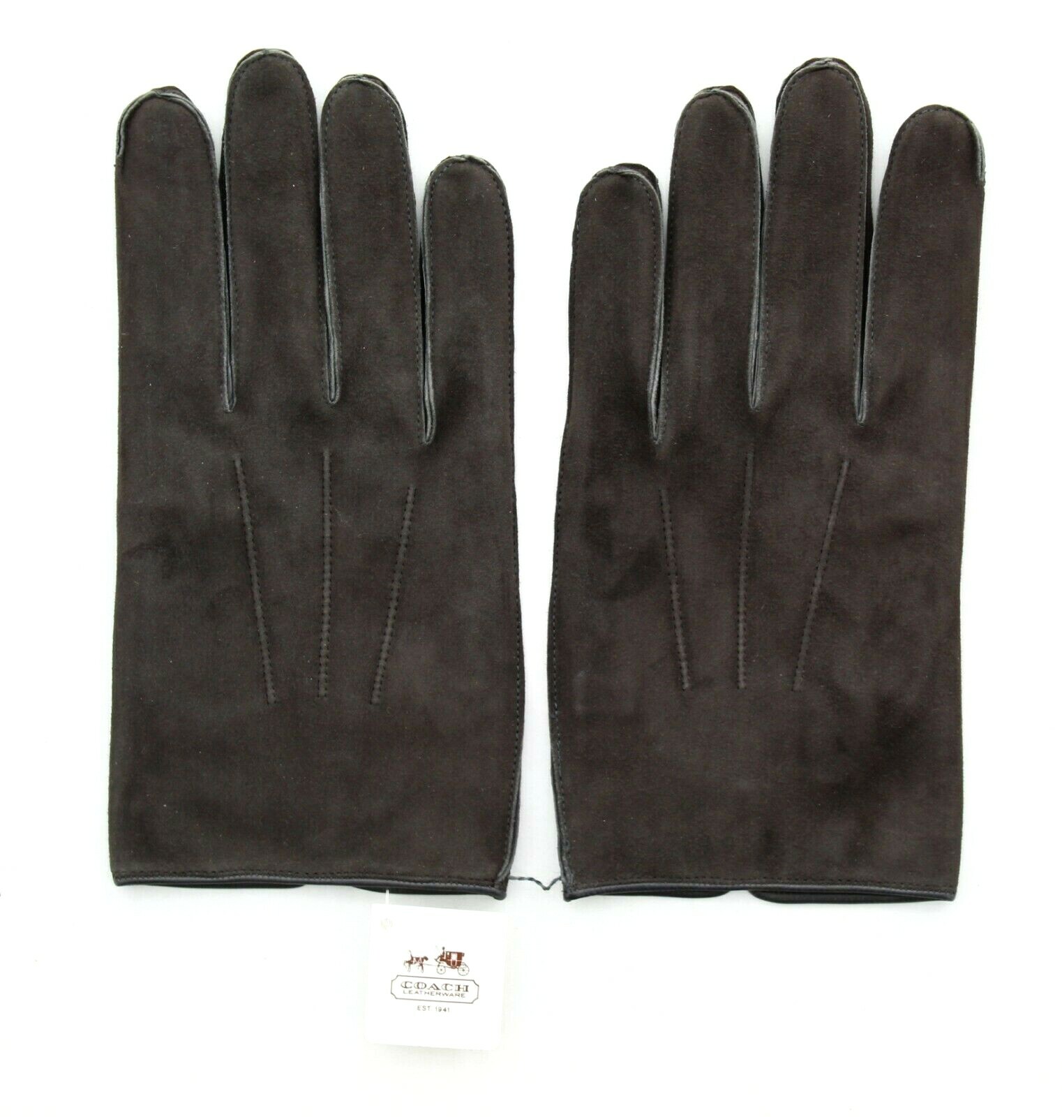 Coach Gloves Men's 100 Leather Nubuck, Silk Lined, Shale Black 80967, 98