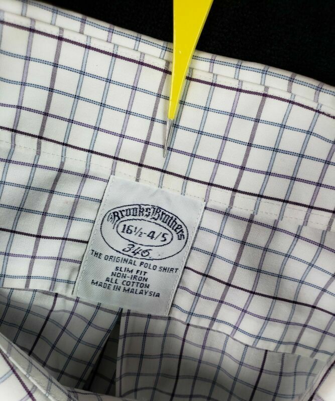 Brooks Brothers 346 Mens Button Dress Shirt 16 1/2 Purple Plaid B2