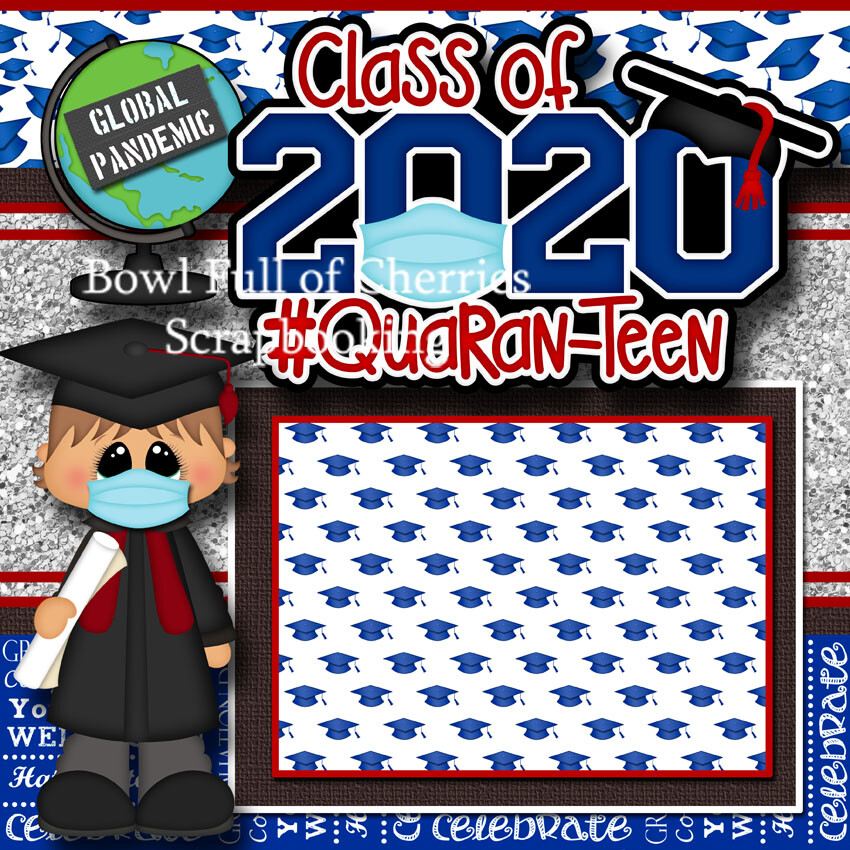 GRADUATION BOY QUARANTINE 2 premade scrapbook pages LAYOUT printed CHERRY 0143