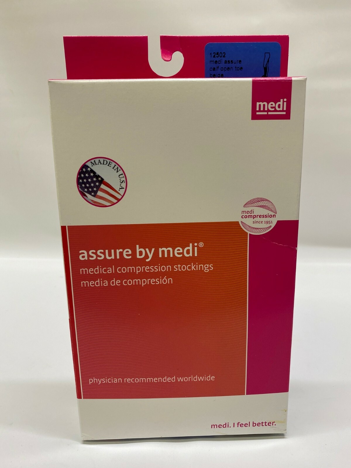 NEW Assure Medi 15-20mmHg Open Toe Calf Compression Stockings Beige - Pick Size