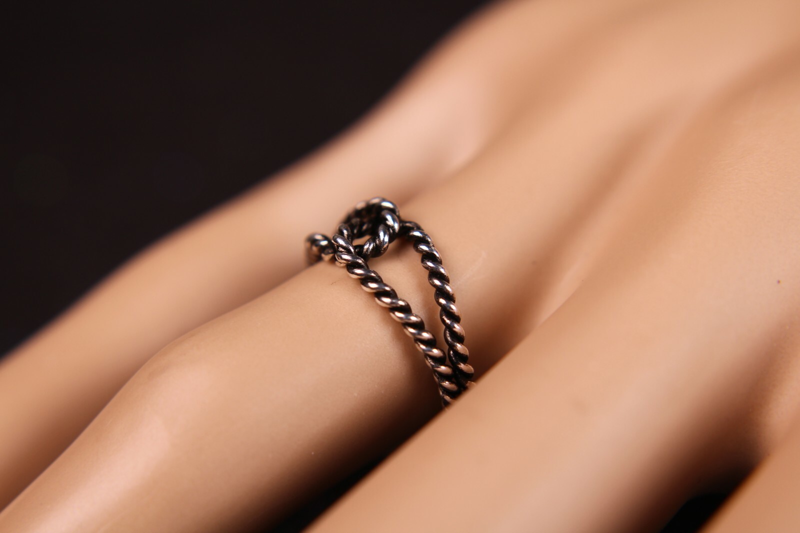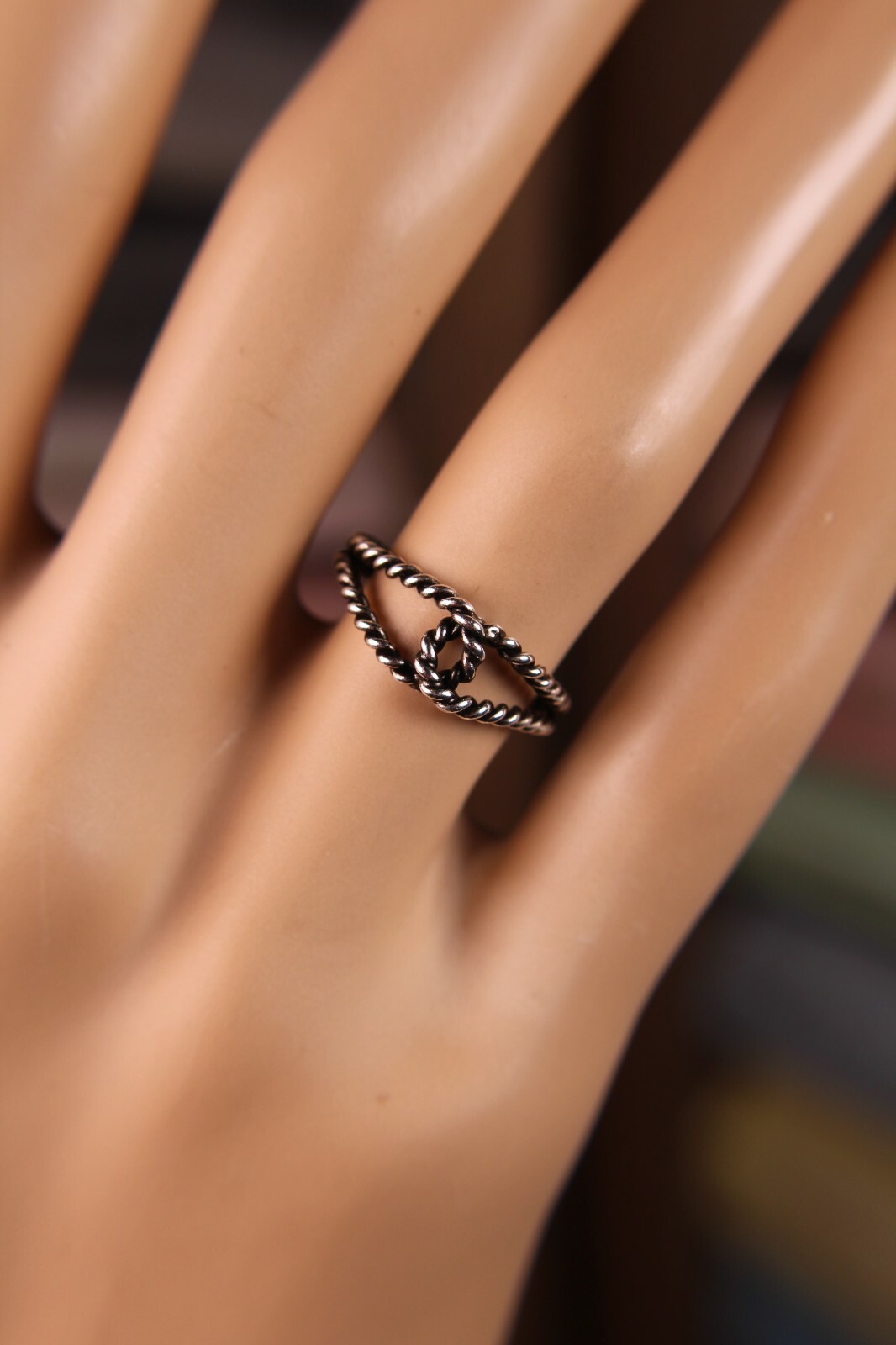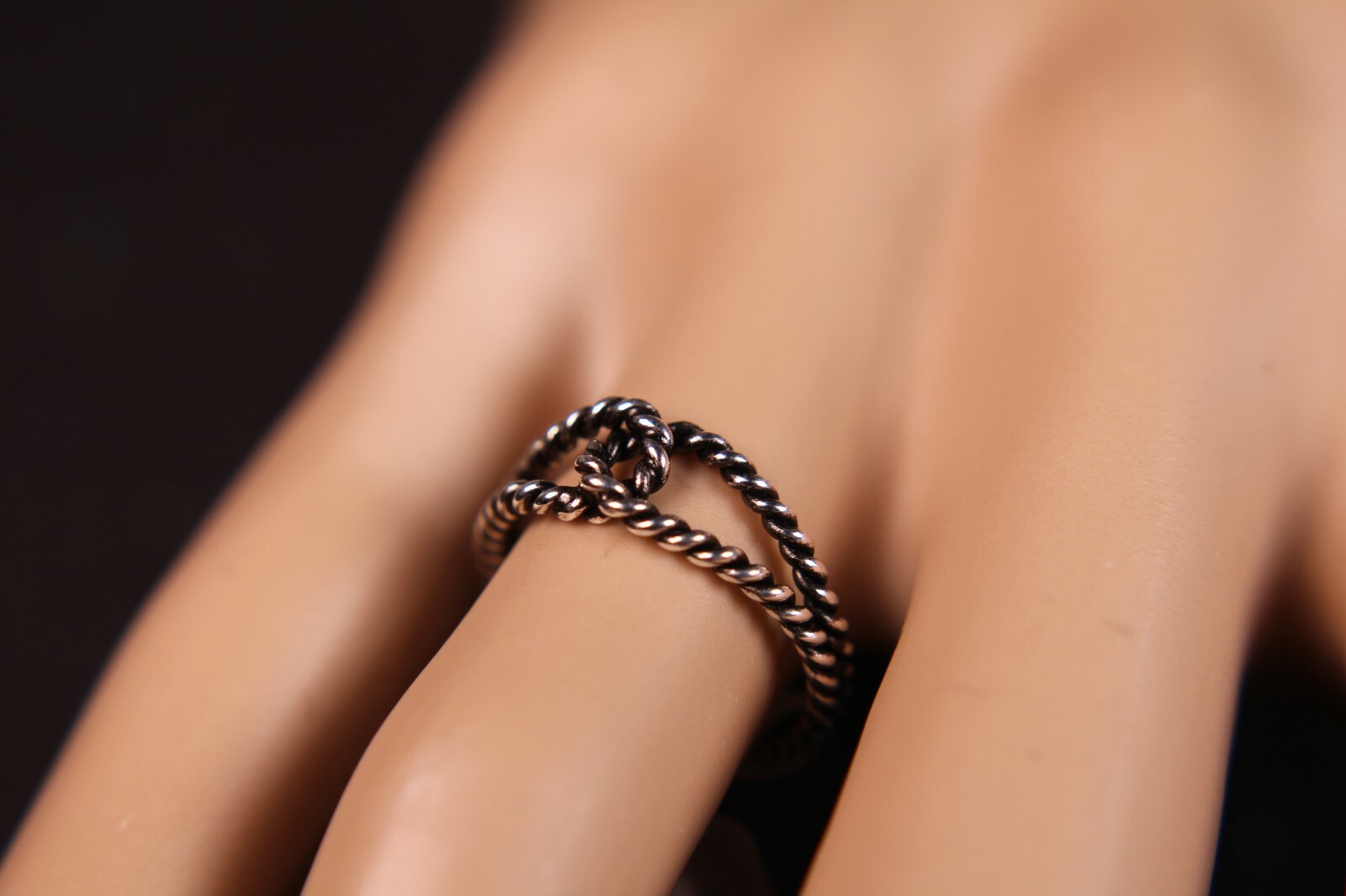 Sterling Silver Rope Ring Interwoven Double Loop Knot Ring