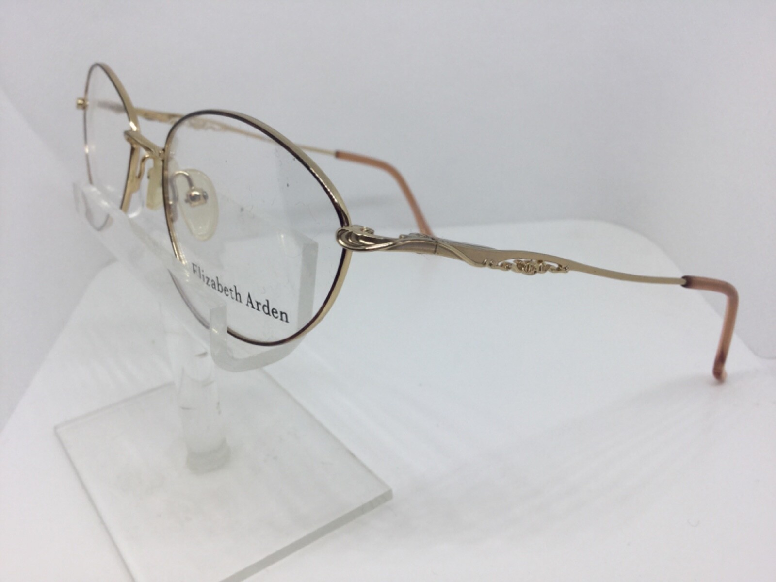 Vintage Elizabeth Arden EA-679 Eyeglasses Oval Metal Gold Spring Hinges