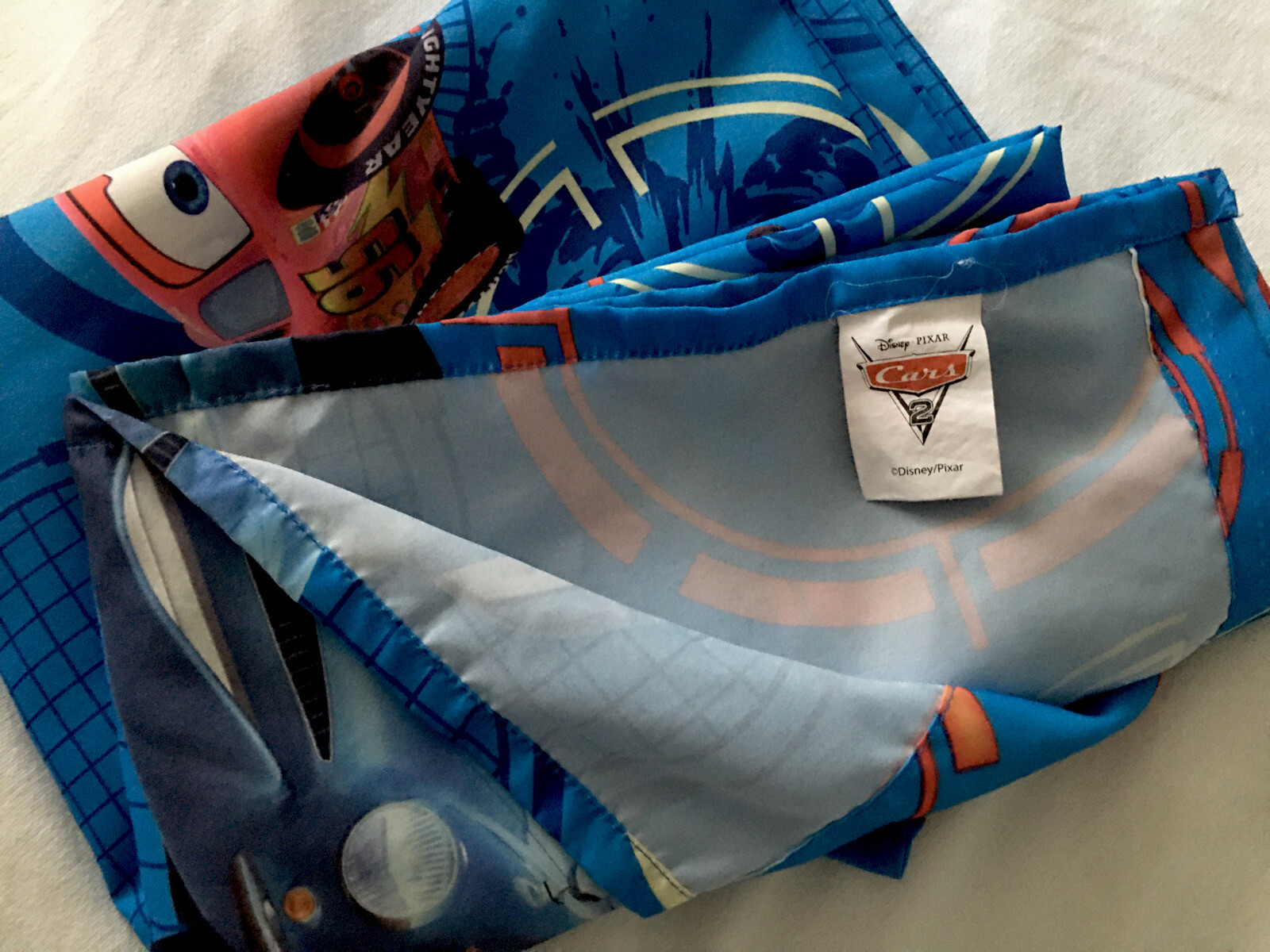 Disney Pixar Cars2 Twin Flat Sheet - Lightning McQueen, Mater and Finn McMissile