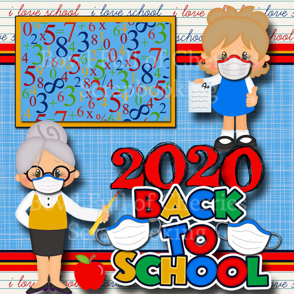 2020 BACK TO SCHOOL QUARANTINE MASK 2 premade scrapbook pages paper Cherry 0187