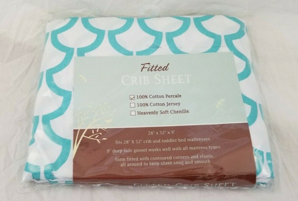 как выглядит TL Care 100 Cotton Jersey Turquoise White Fitted Crib Sheet NIP фото