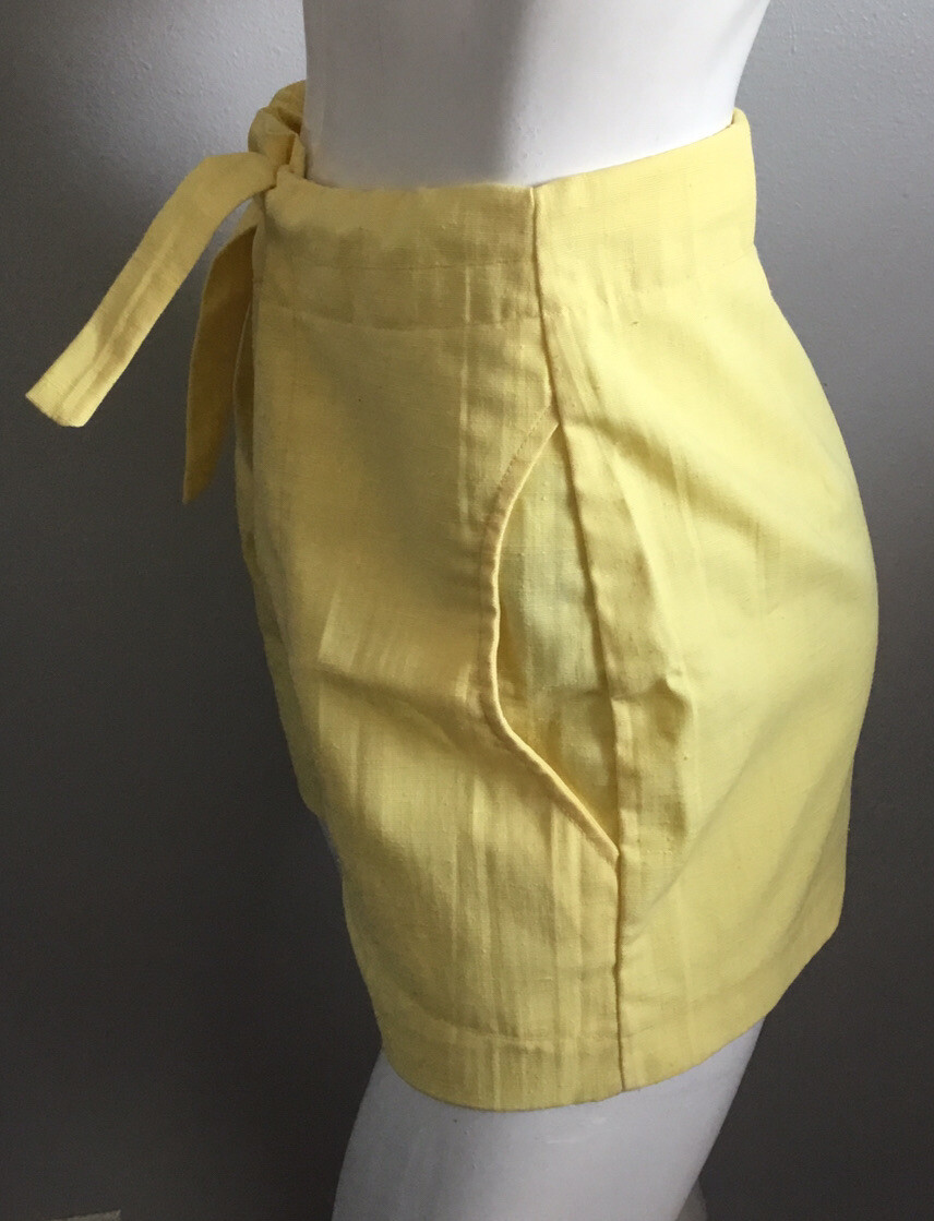 Vintage 70 s Yellow Cotton Casual Corner Tie Front Shorts