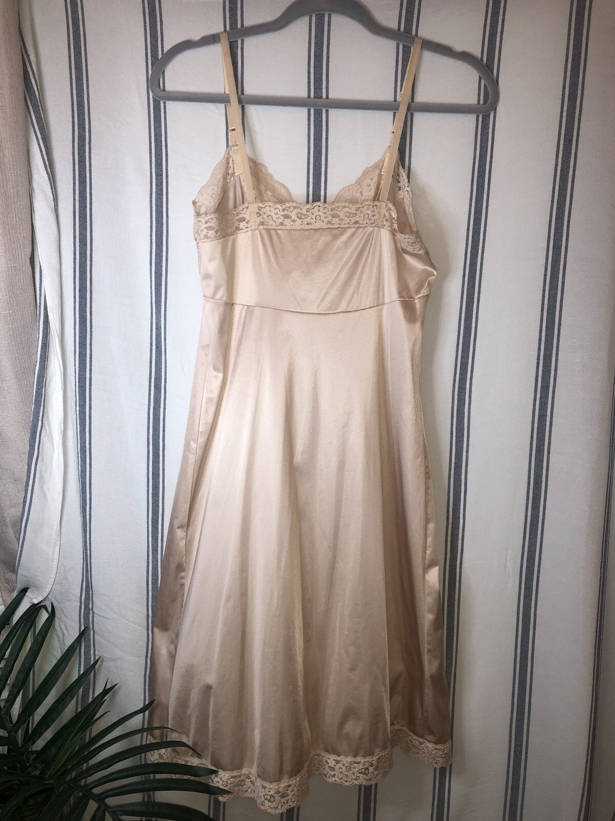 как выглядит Vintage Vassarette Lingerie Nude Nightgown Nightie Slip Dress Nylon 32F 1960 s фото