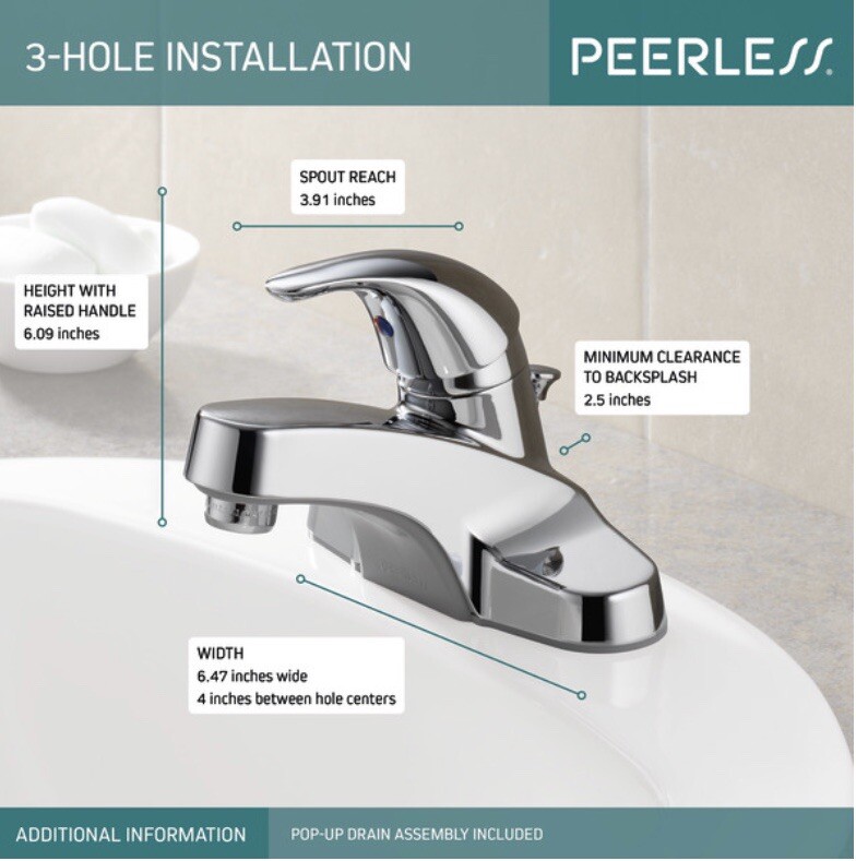 как выглядит Peerless Tunbridge Centerset Single Handle Bathroom Faucet Chrome Standard Spout фото