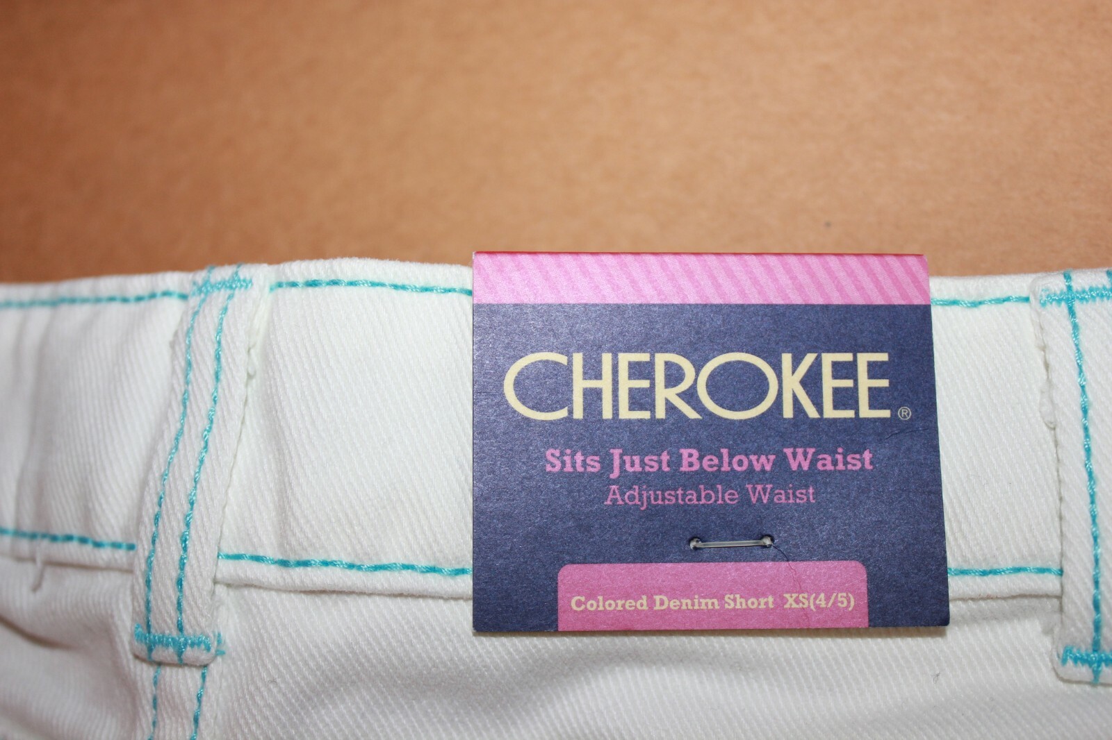 как выглядит Cherokee Colored Denim Shorts White Blue Trim Girls Size XS 4-5 NWT фото
