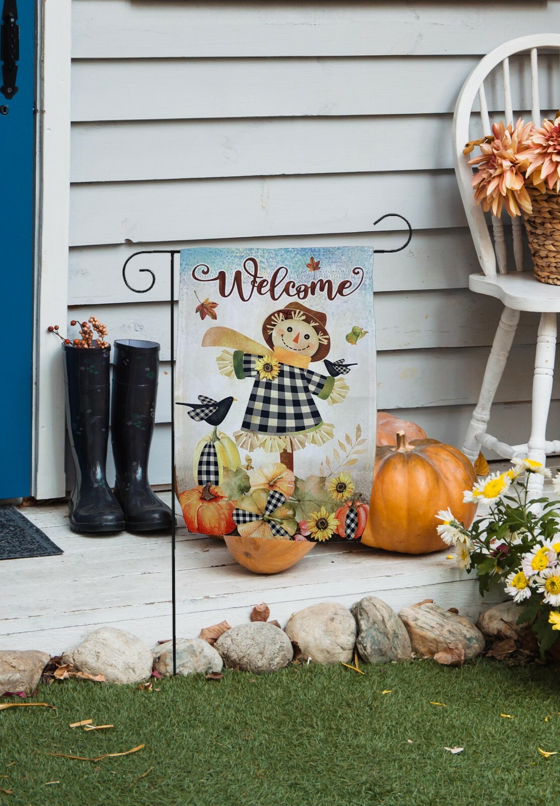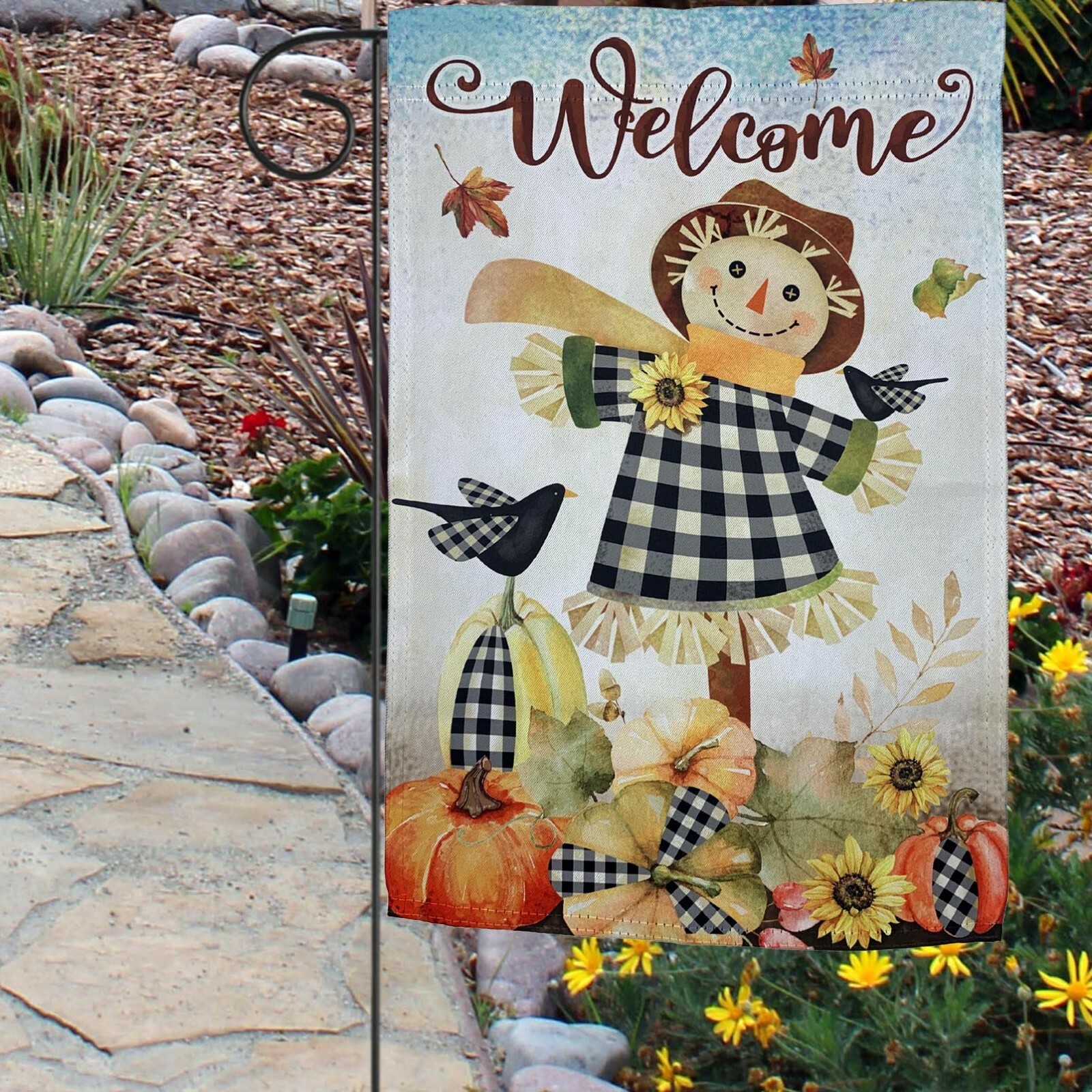 Fall Scarecrow Welcome Garden Flag 12 x 18, Double Sided, Thanksgiving