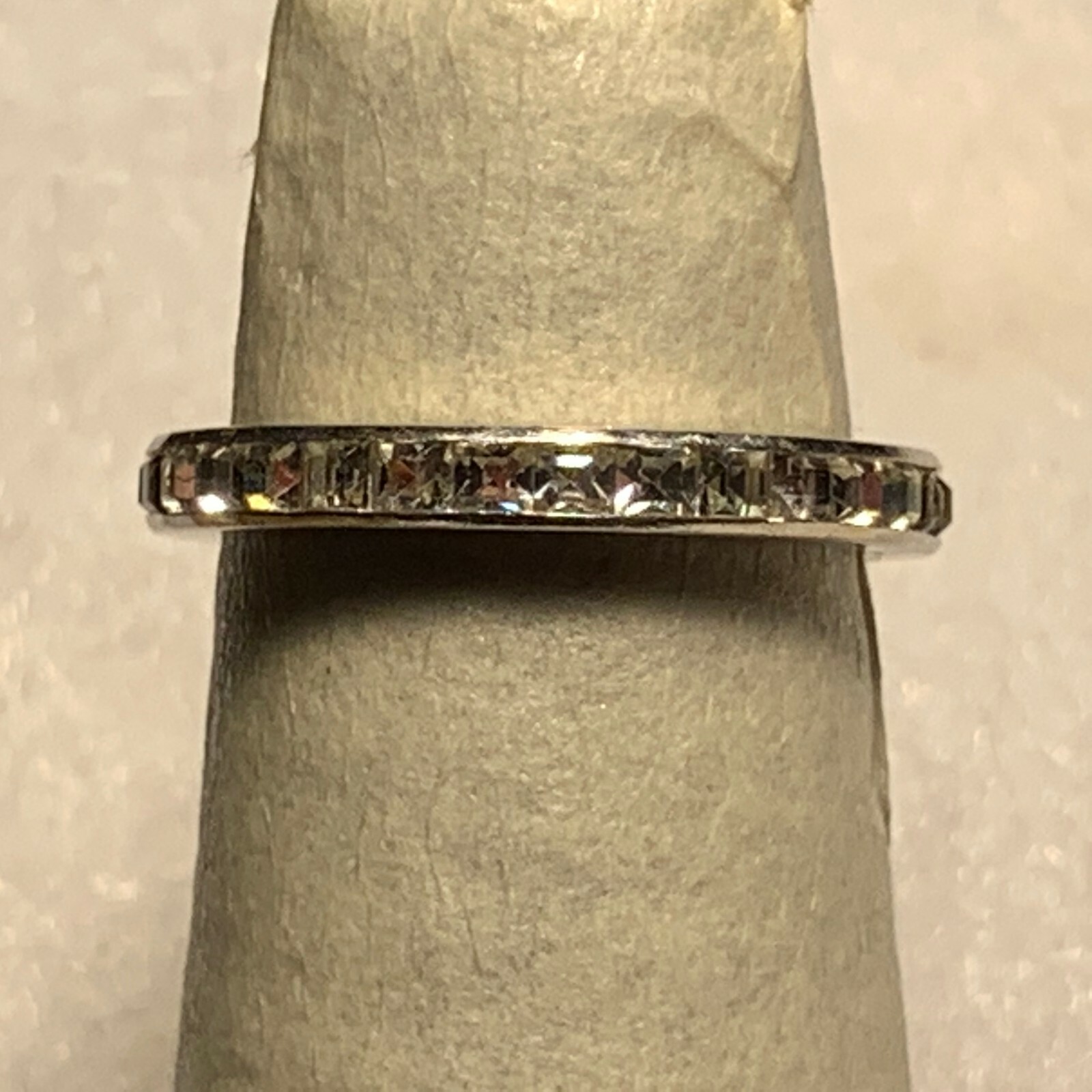 Vintage Sterling Silver 925 Band Style Ring with Clear Stones Size 5.25.