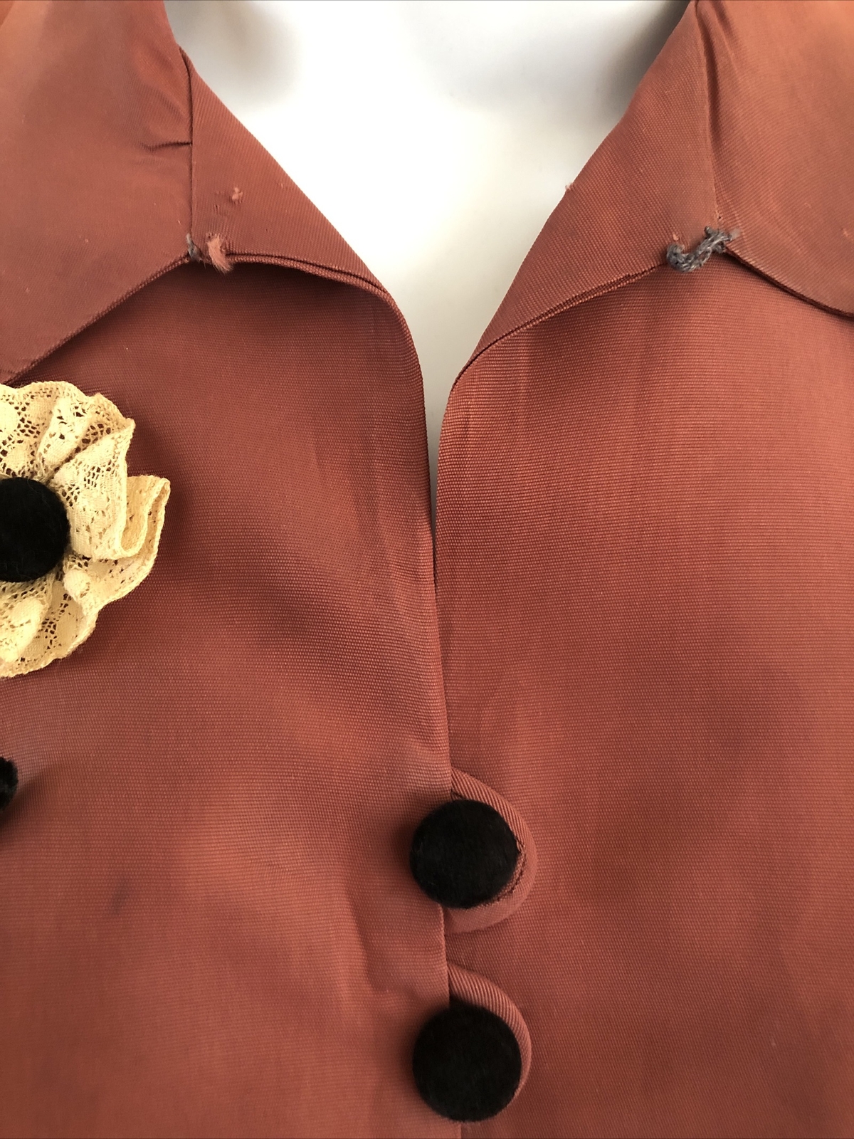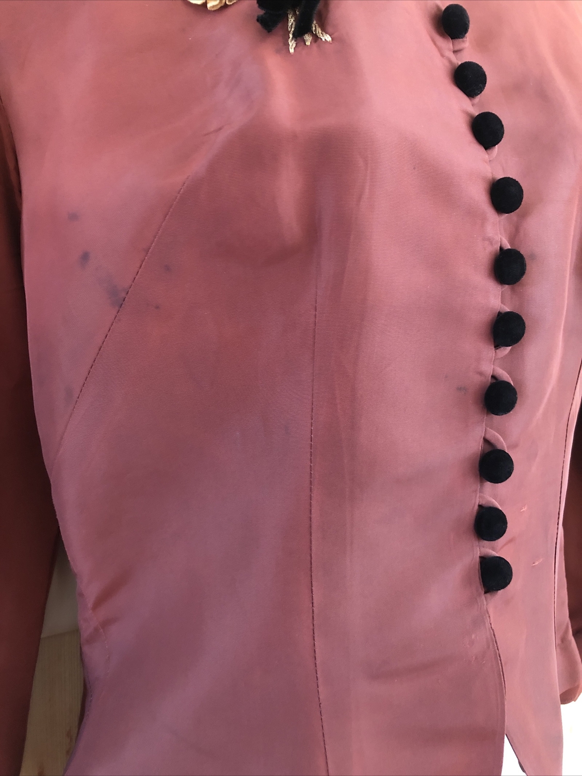 Victorian Antique Mauve Blouse W/ Velvet Buttons Lace Flower Size S/M