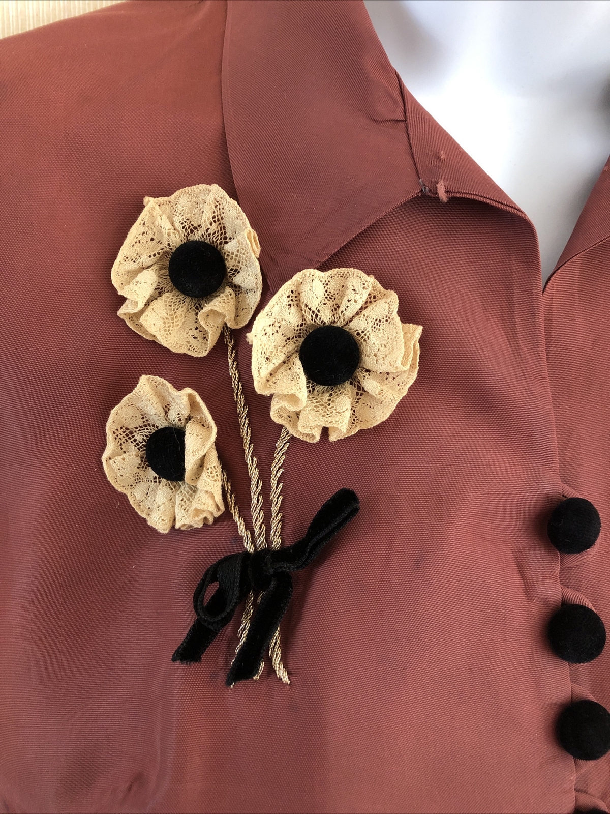 как выглядит Victorian Antique Mauve Blouse W/ Velvet Buttons Lace Flower Size S/M фото