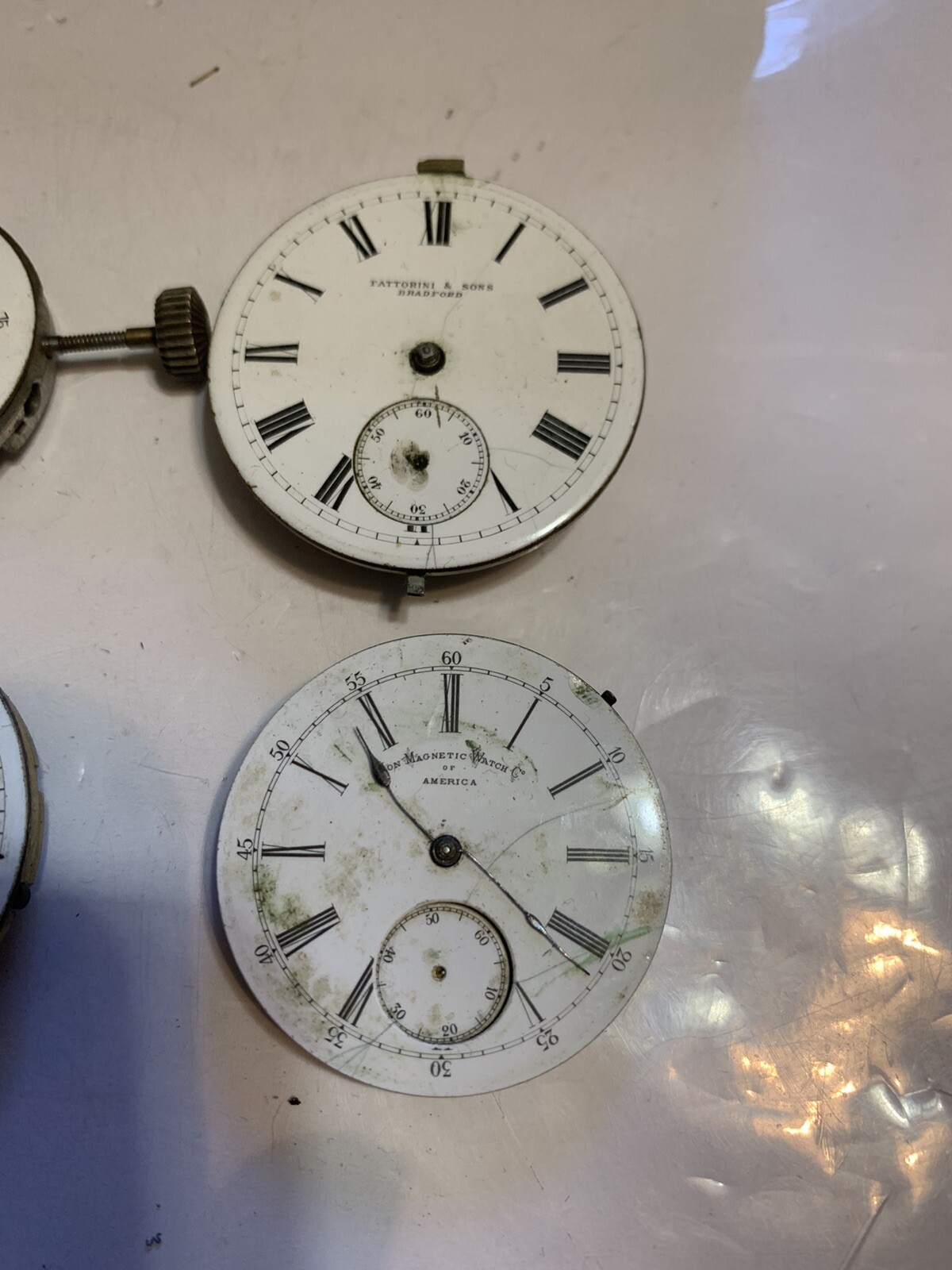 как выглядит lot of 4 pocket watch movements for parts or repair фото