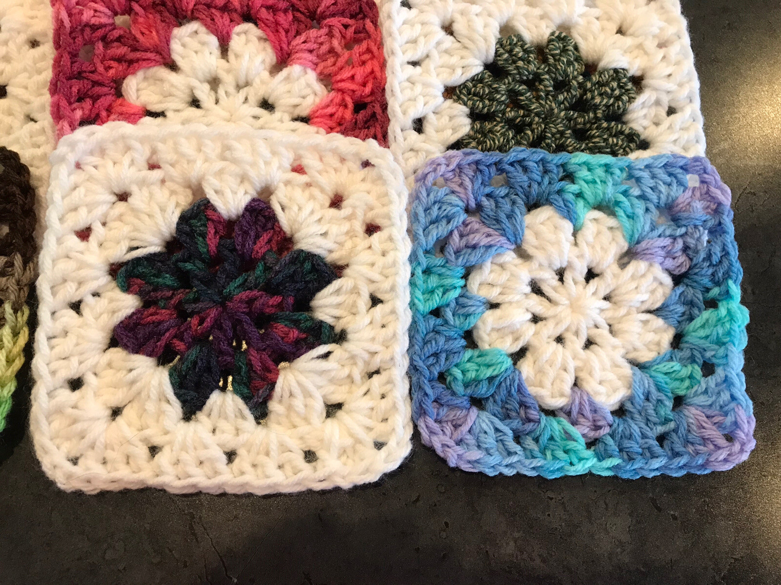 как выглядит Lot of 20 5 ASSORTED Shaded COLORS Crochet DAISY FLOWER GRANNY SQUARES Block фото