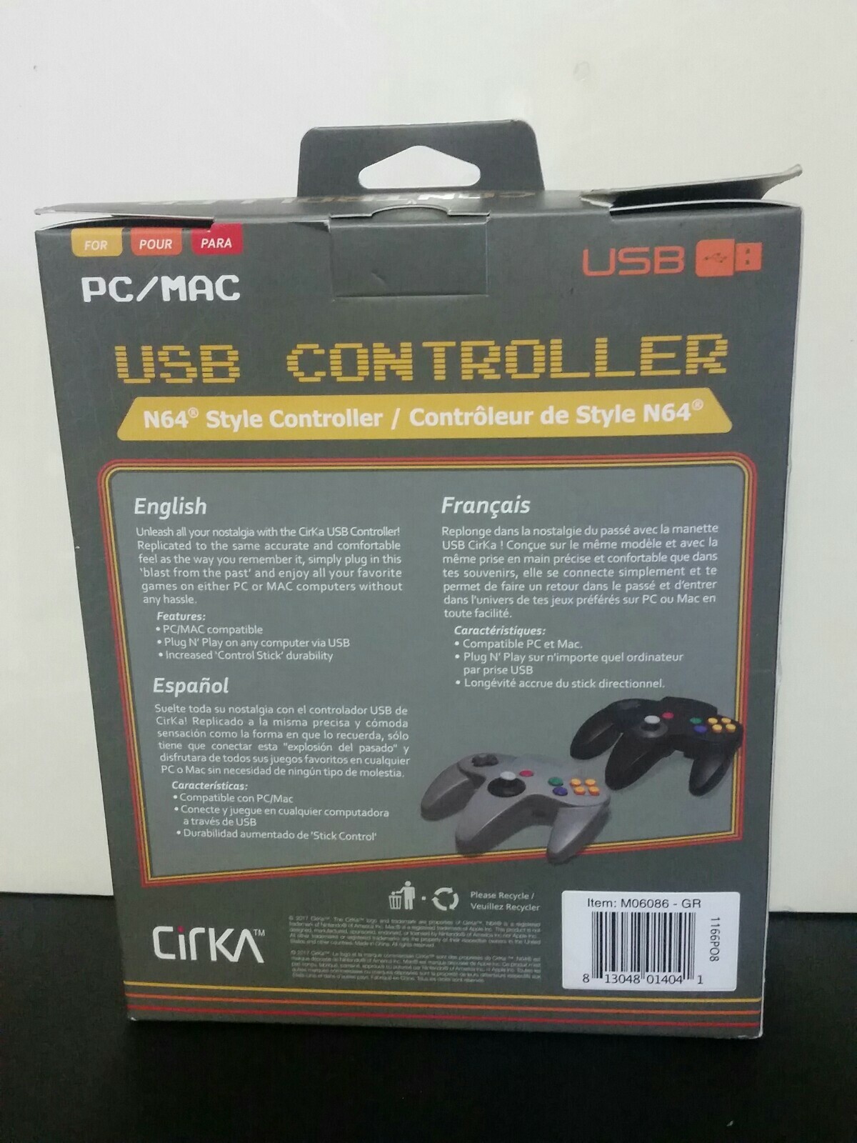 NEW N64 Style Retro Grey, CIRKA USB Controller Joystick pad for PC/MAC