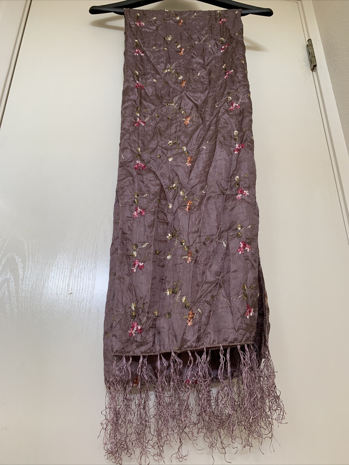 как выглядит Shawl Scarf Wrap Flower VTG 70 s Large Multi Color Silk Tasseled Floral Fringed фото