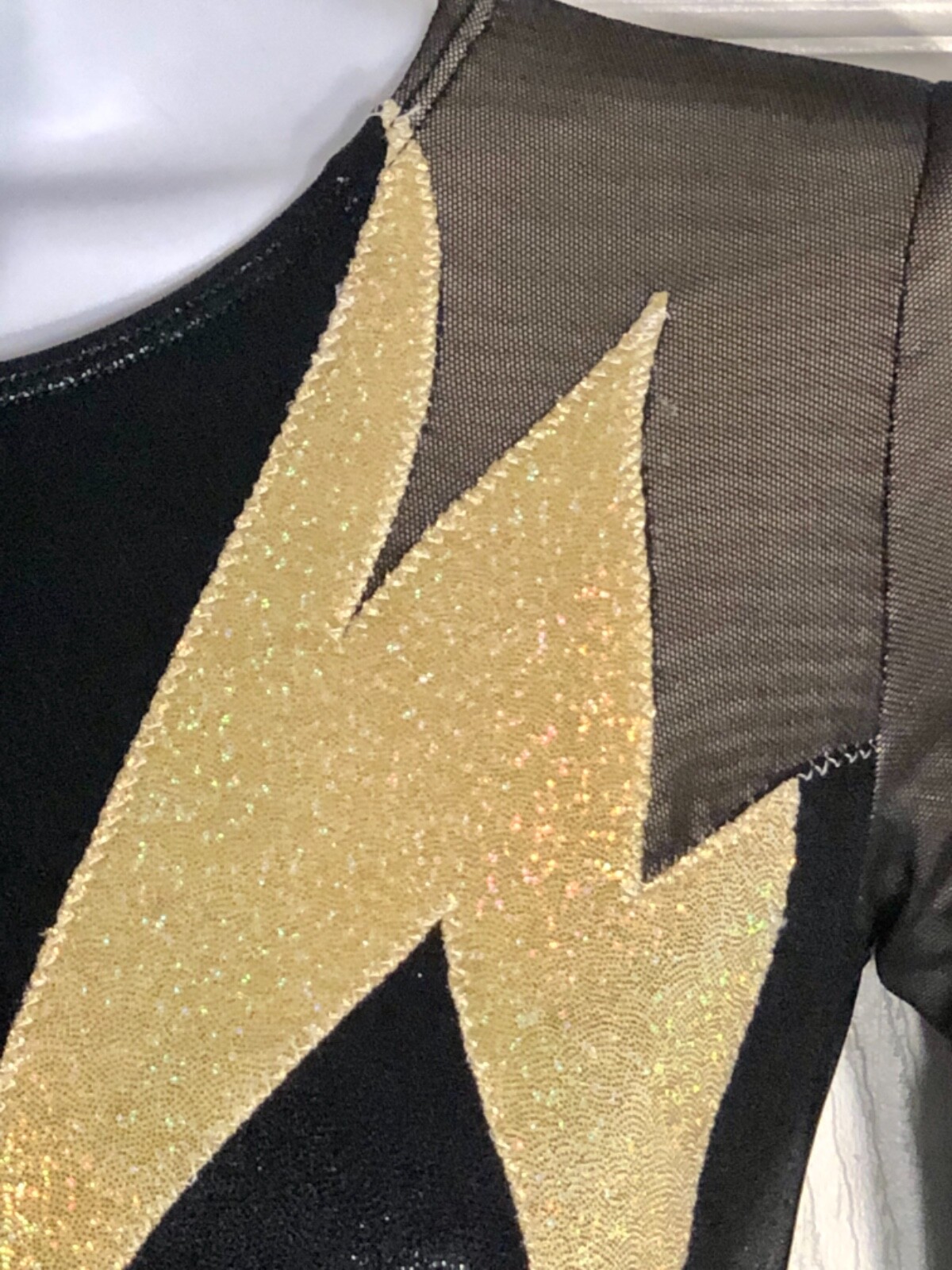 как выглядит GK LONG SLEEVE ADULT SMALL BLACK MYSTIQUE GOLD FOIL MESH DANCE LEOTARD фото