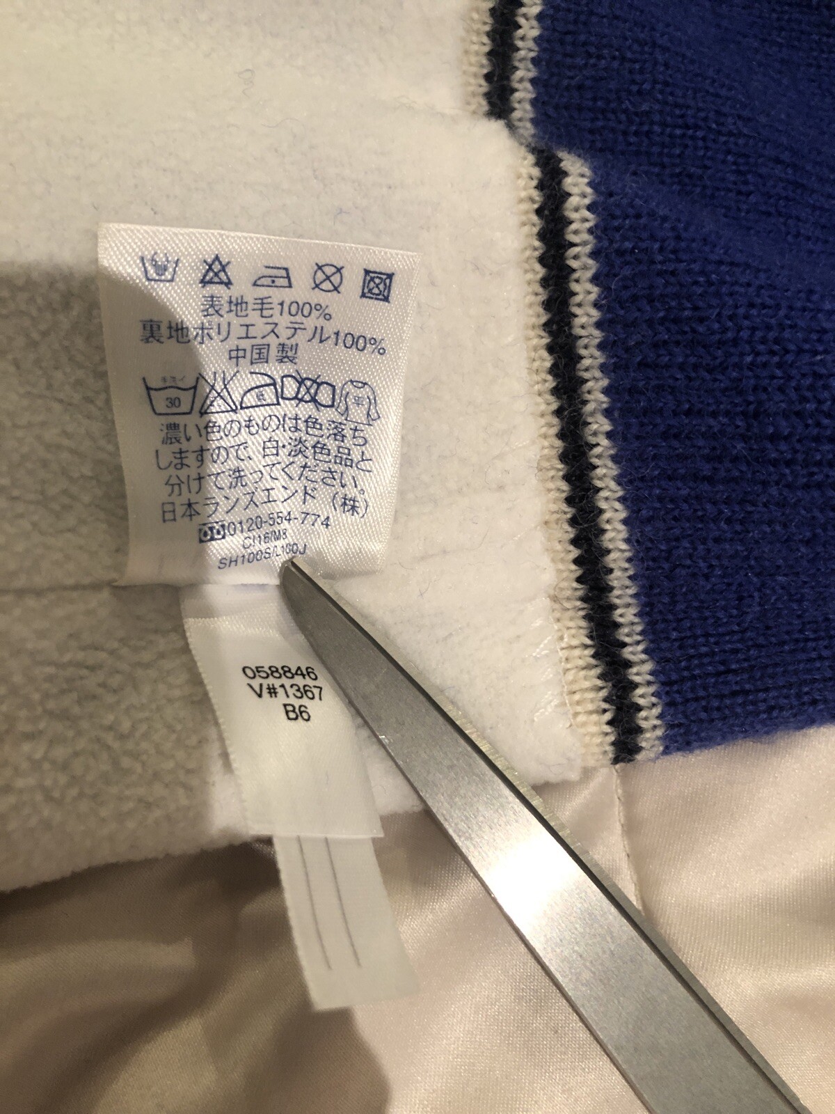 как выглядит LandsEnd Ski Beanie, Ski/sail Patch, Blue And White. Outer Wool Ear Fleece Larg фото
