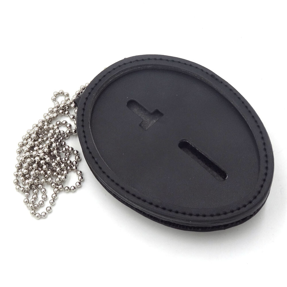 Genuine Leather Oval Badge Holder Case Wallet For L A P D Police Badge