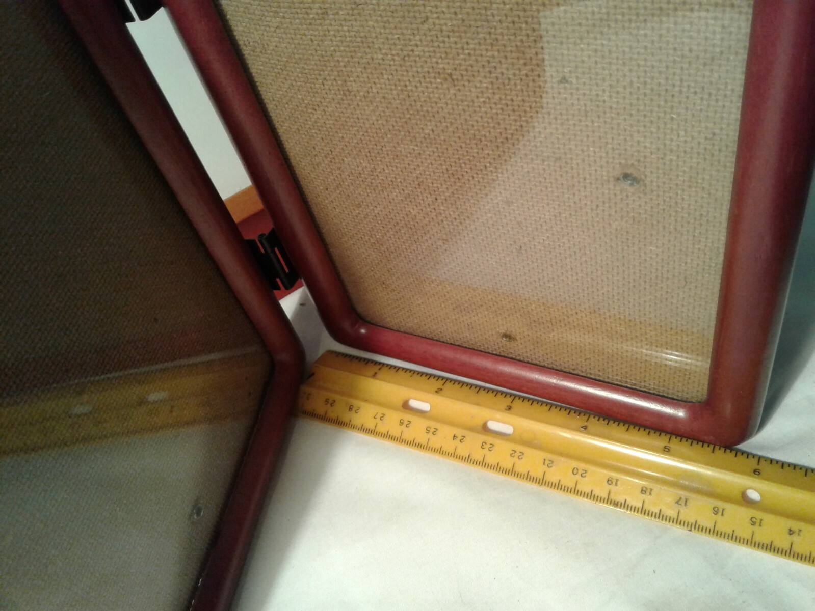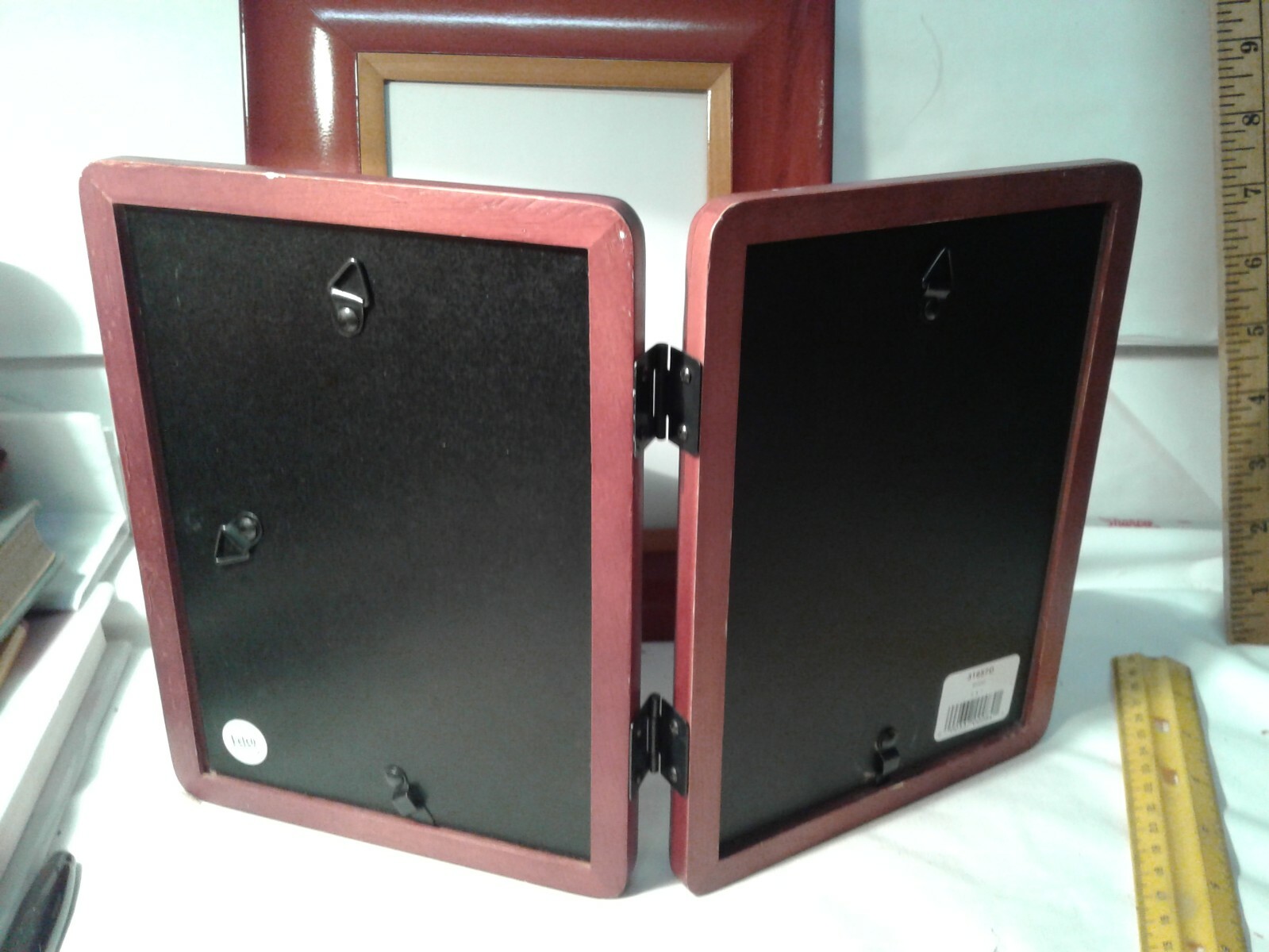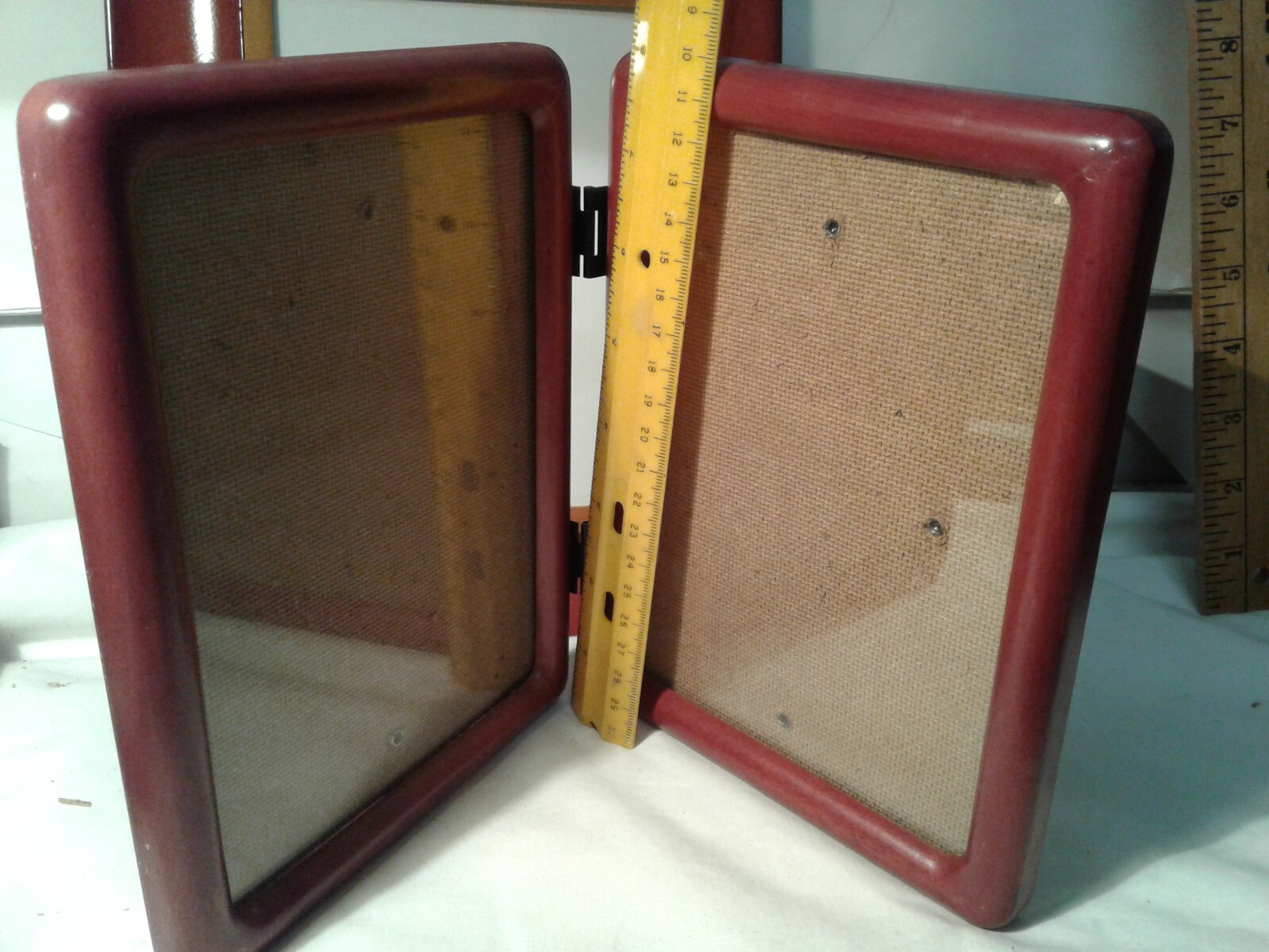 2 wood picture frames hold 5 7 total 3 pictures reddish tint plexiglass covers s