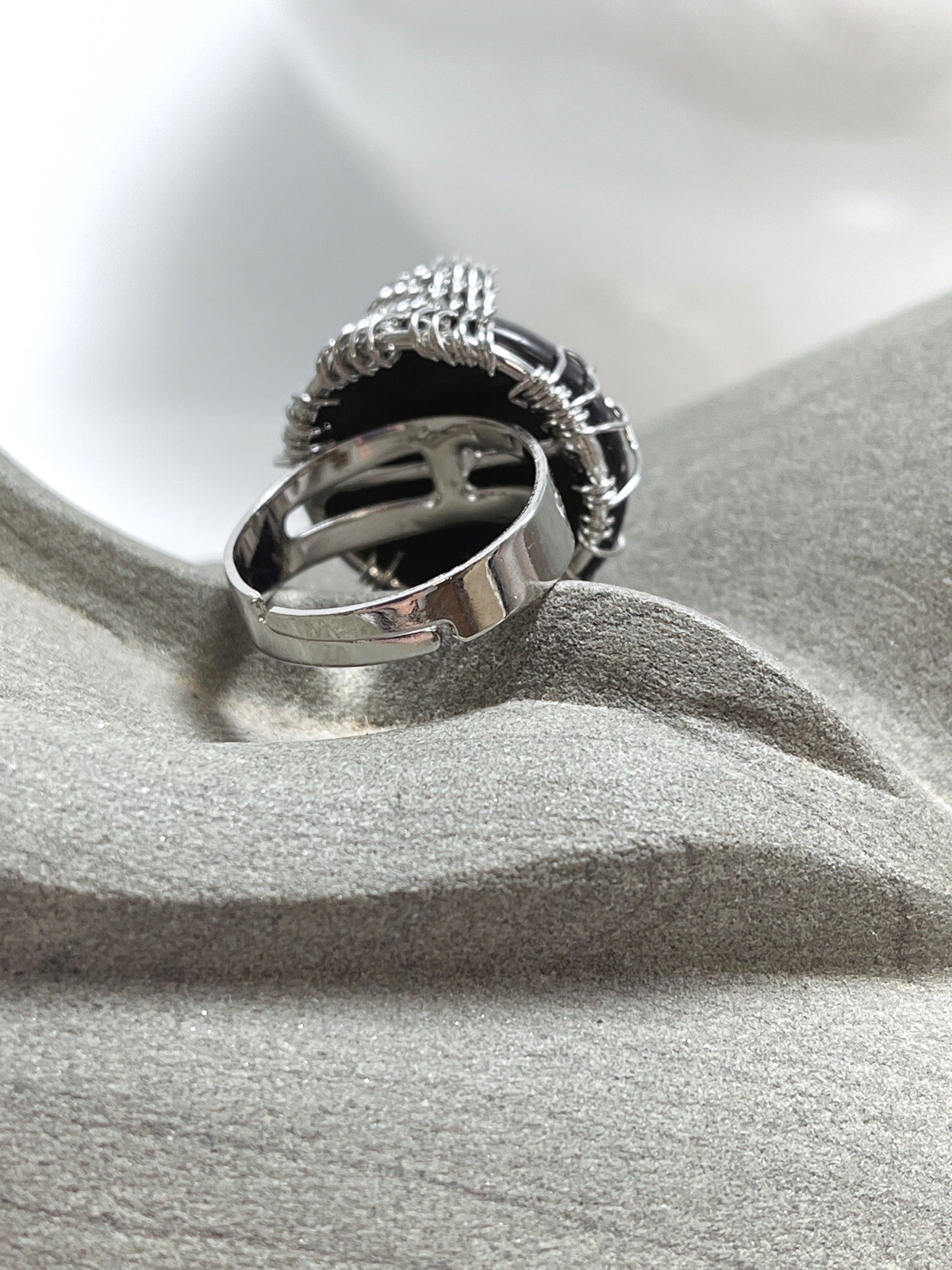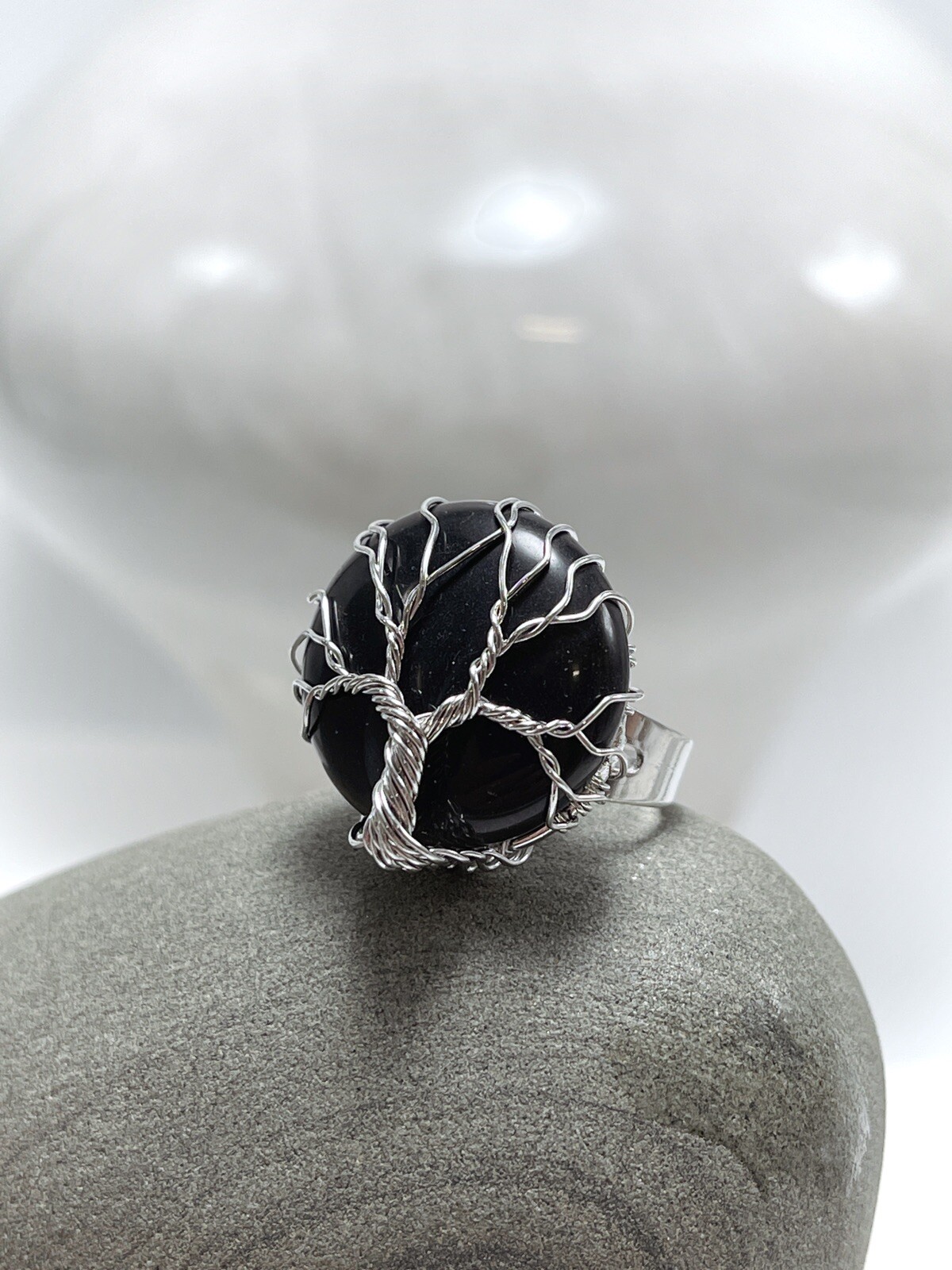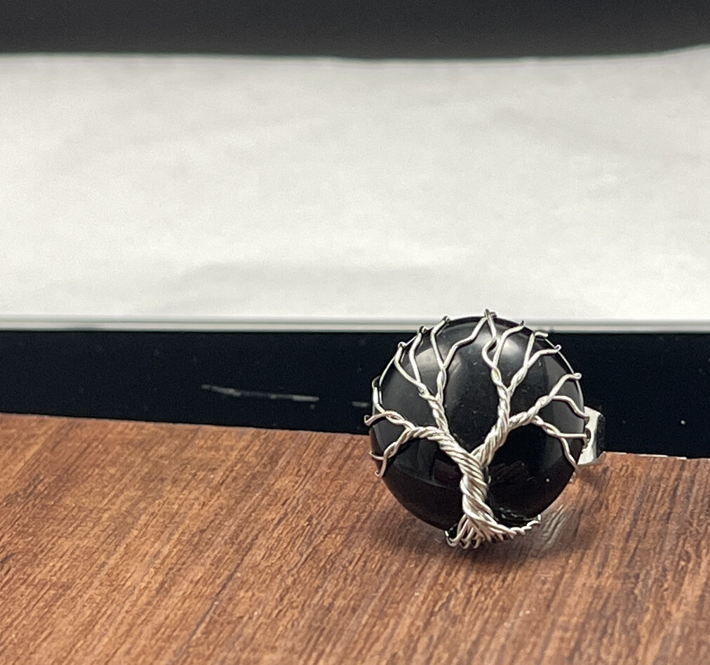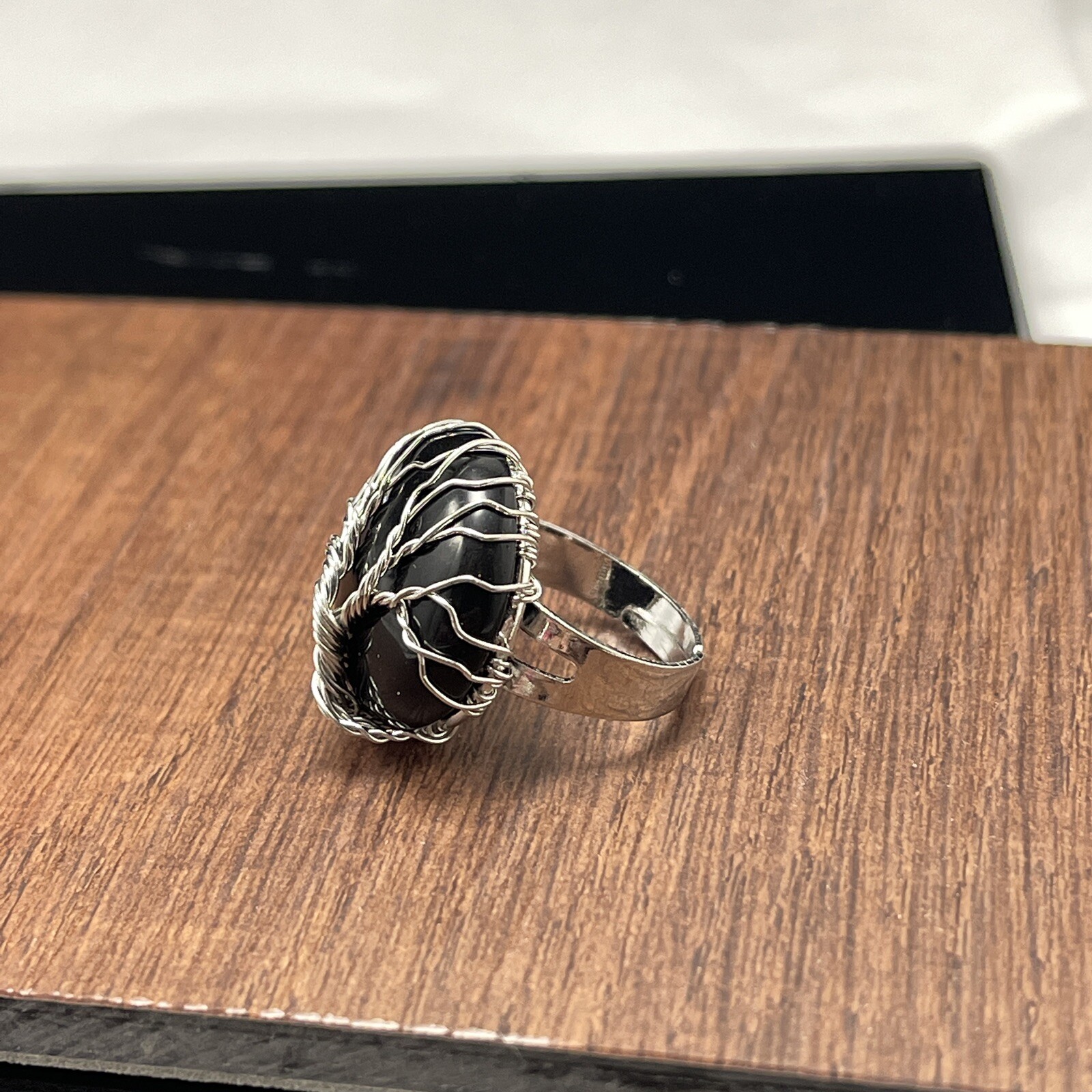 как выглядит Tree of Life wire wrapped ring Black Onyx фото