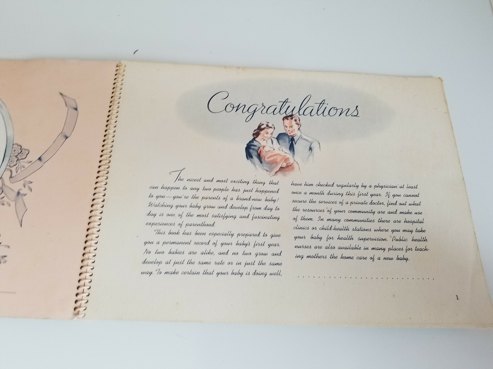 Vintage 1949 Spiral Bound Blue Baby Book Record of Baby's First Year