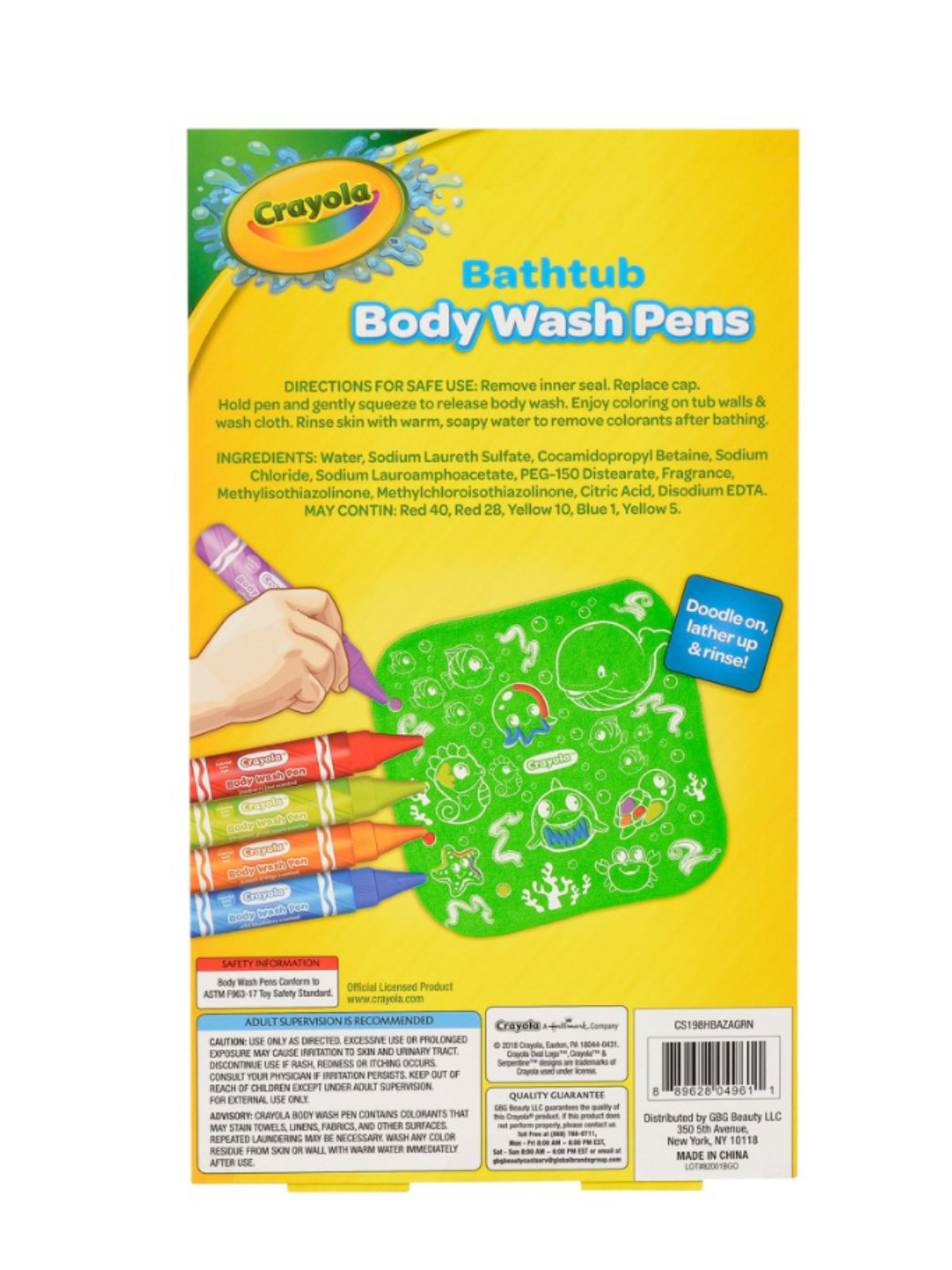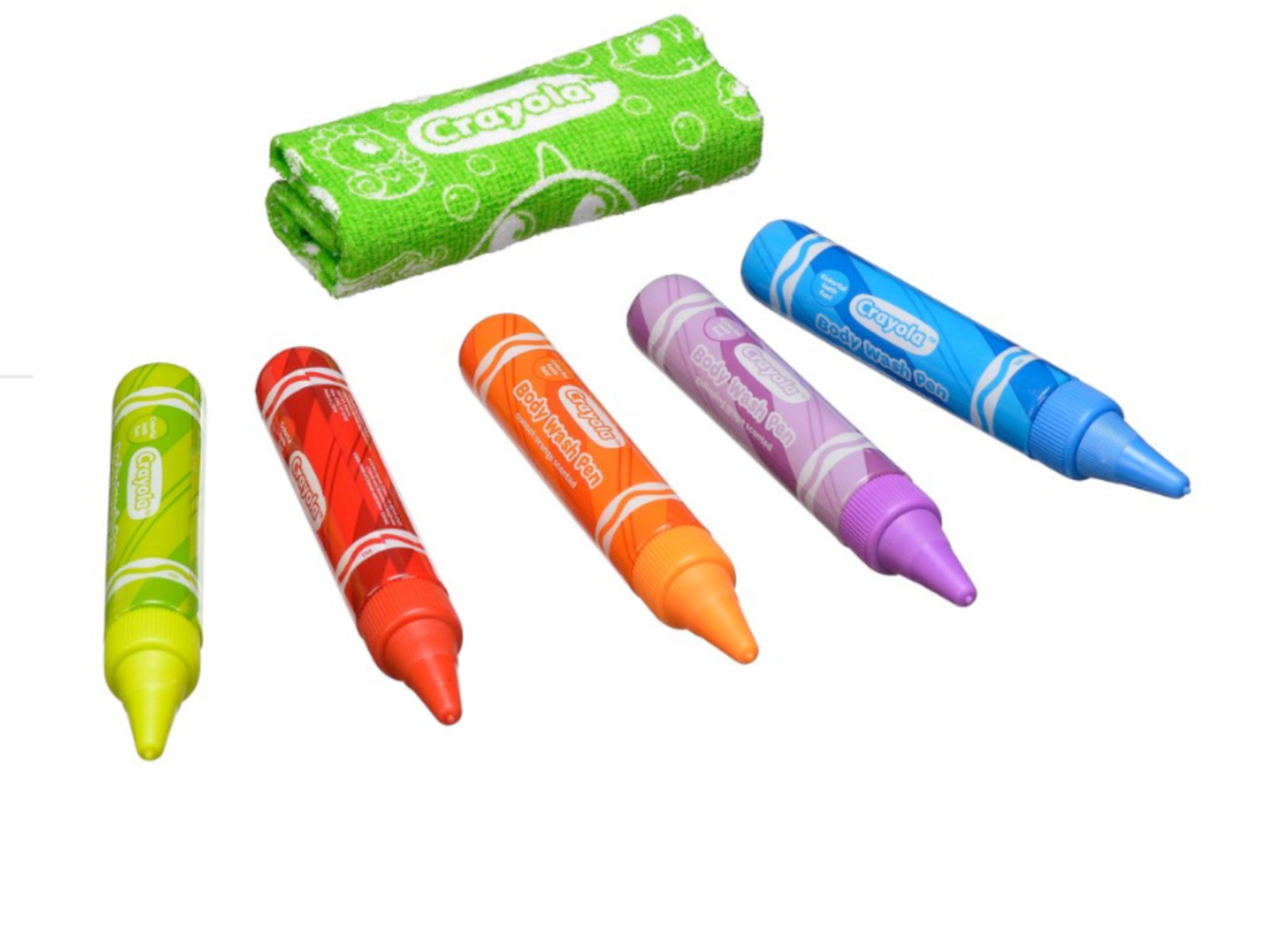 Crayola 6-PC SET Bathtub Body Wash Pens Soft Terry Wash Cloth 5 Fruity Scents