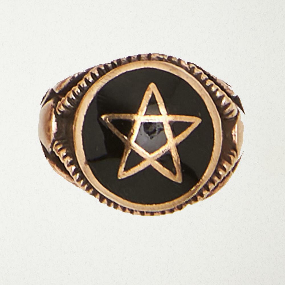 как выглядит Pentagram w/ Black Onyx Side Goat Head Bronze Occult Pagan Magic Ring Jewelry фото