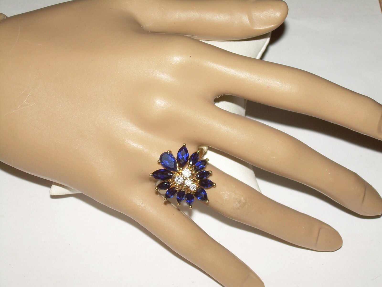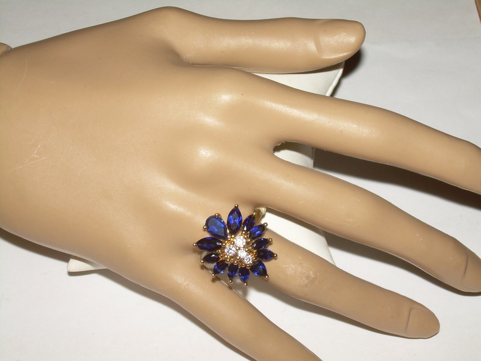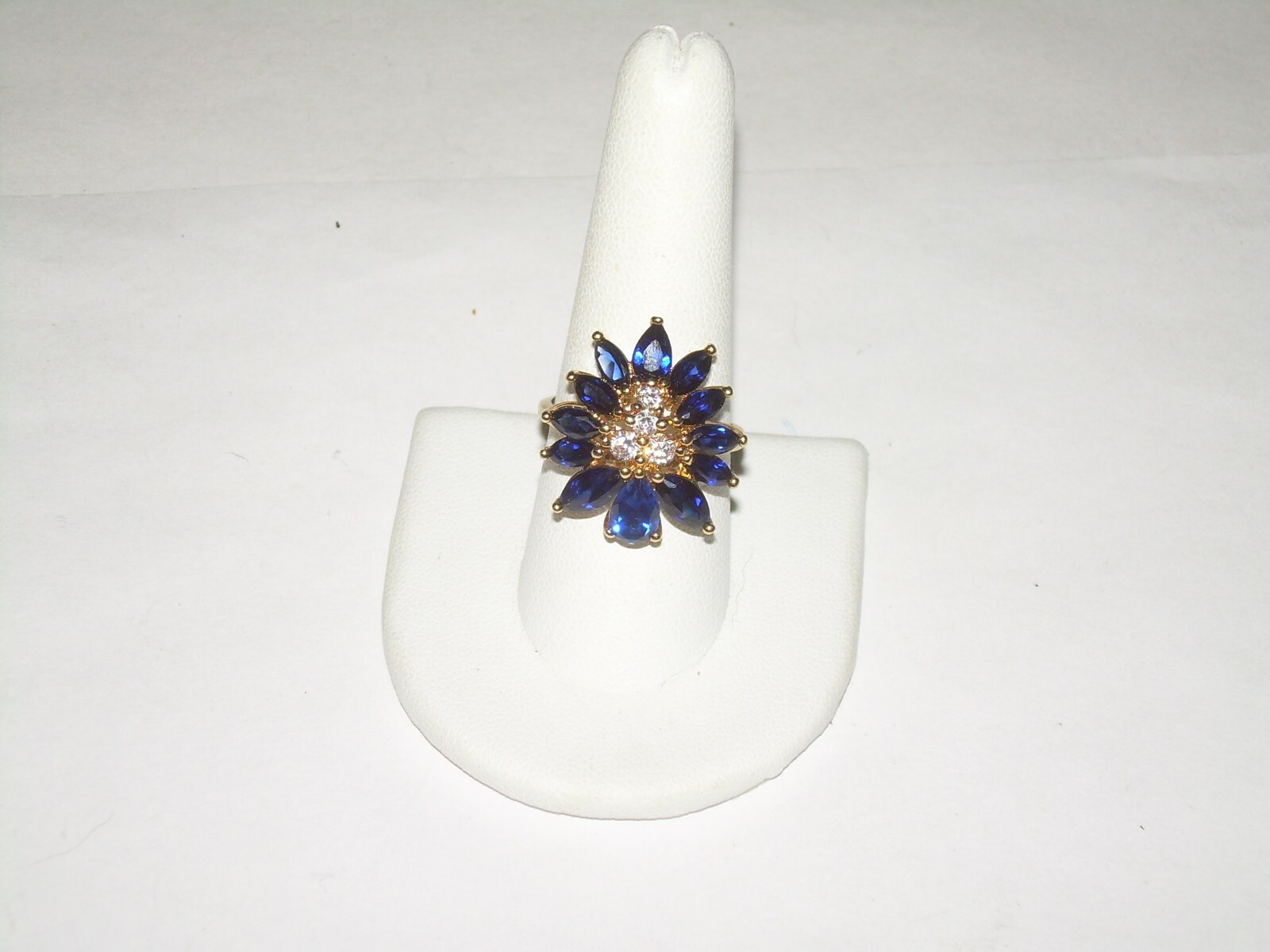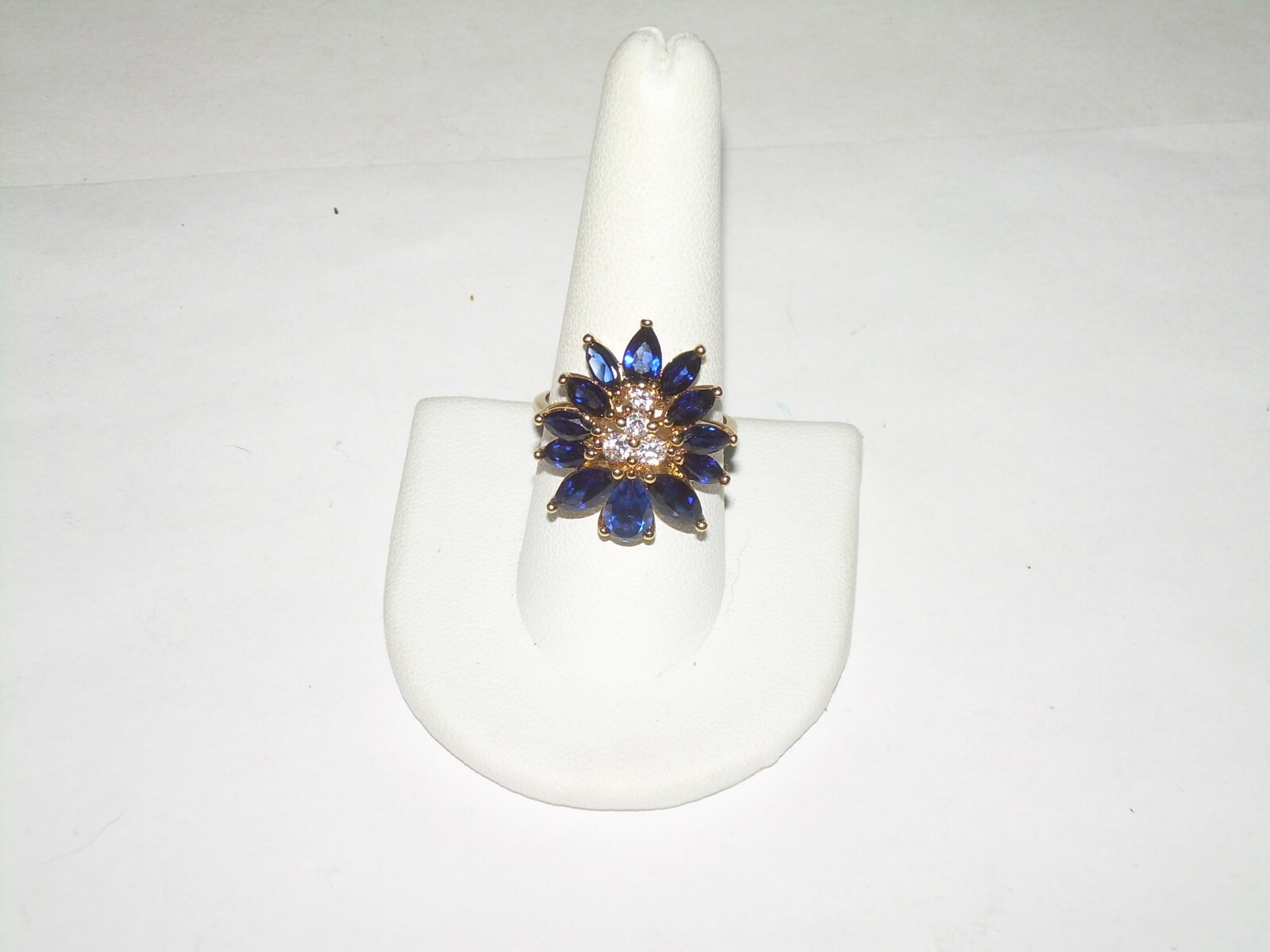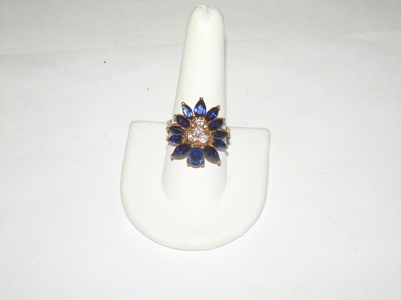 как выглядит Sterling Blue Marquise Spinel Ring With 4 Clear CZs - Size 9, Stamped CA 925 фото
