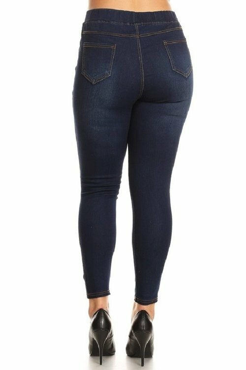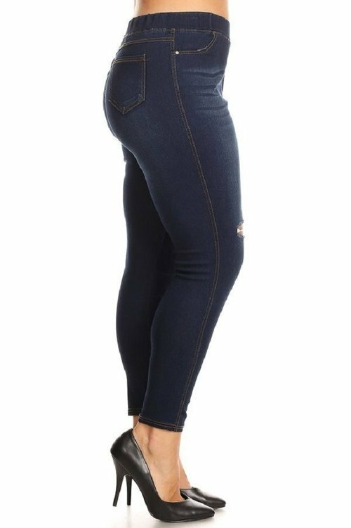 как выглядит JVINI Womens Plus Size Distressed Denim Jeggings Leggings Pants w/ Pockets 3995 фото