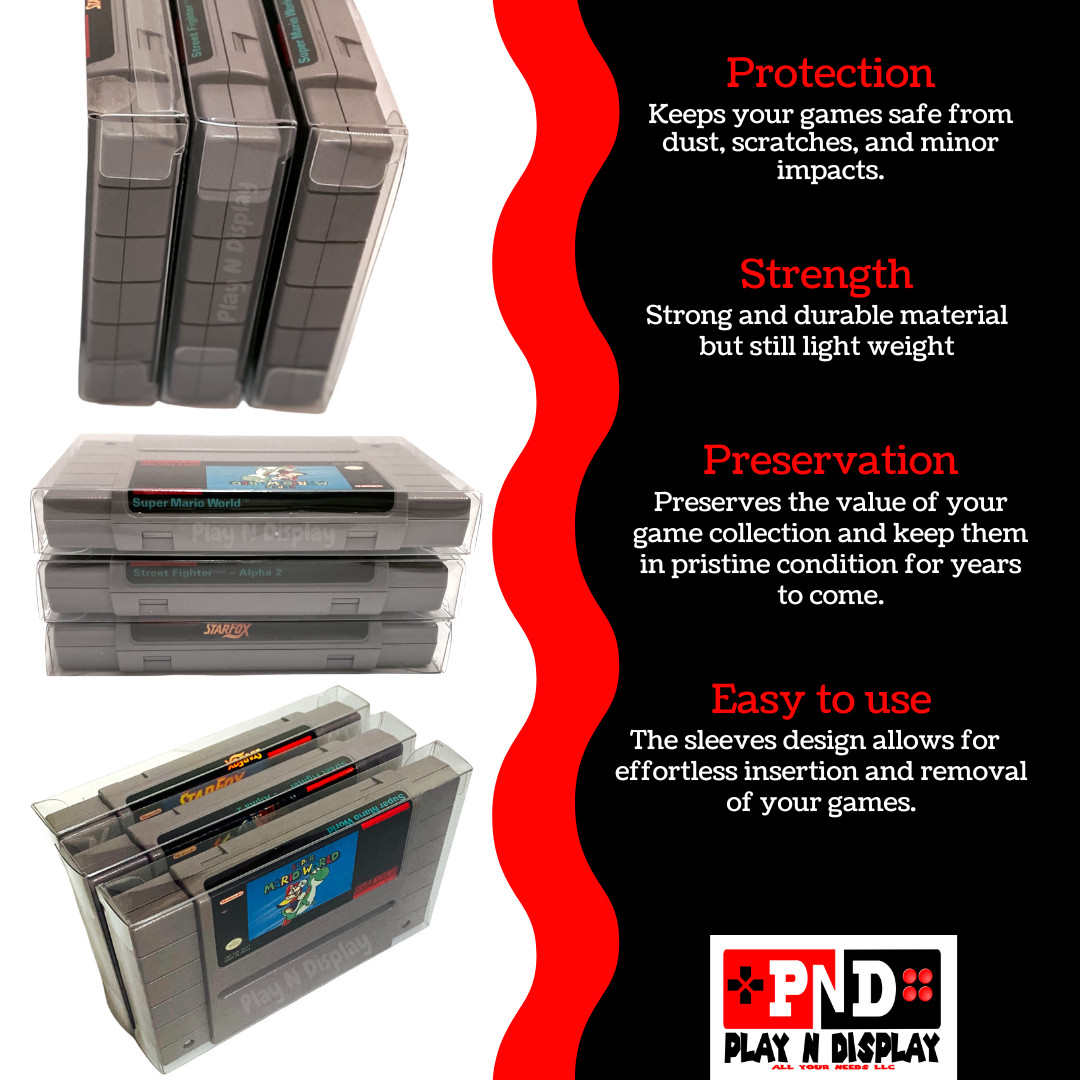 2 SNES Super Nintendo Cartridge Cart Box Protectors Clear Case Sleeve Thick CIB