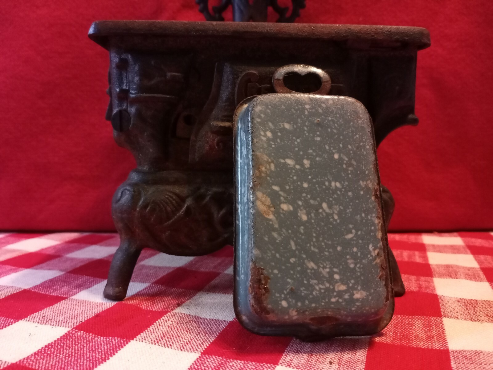 как выглядит Antique Toy Blue Speckled Enamelware Drip Pan Or Roaster. фото
