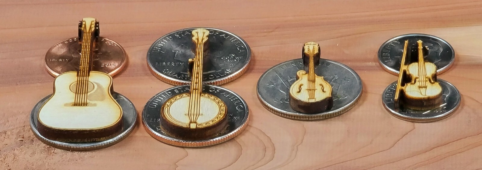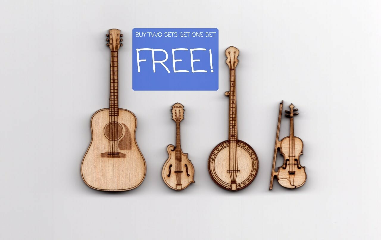 Miniature Musical Instruments Banjo, Guitar, Mandolin, Fiddle. set of 4