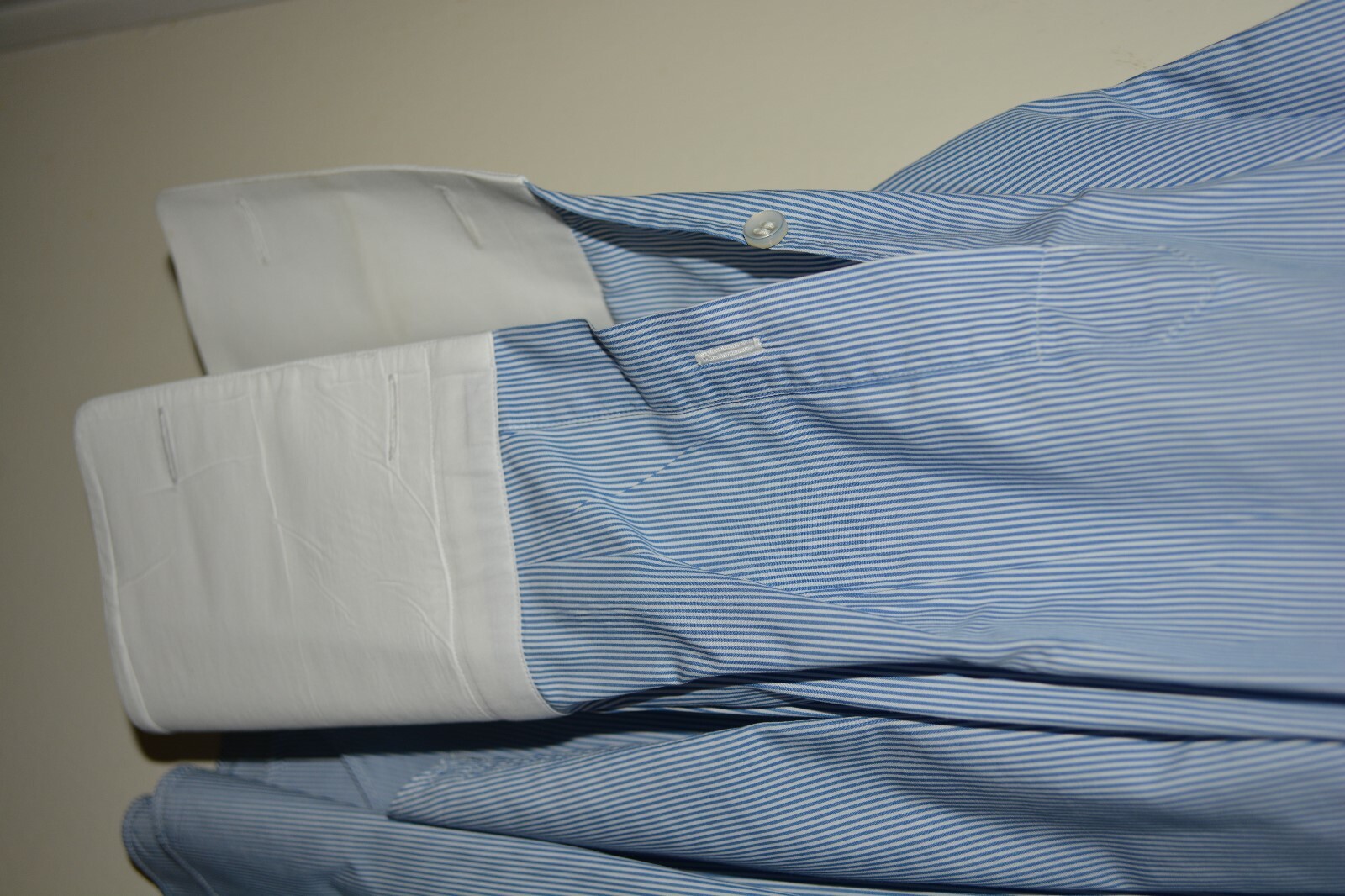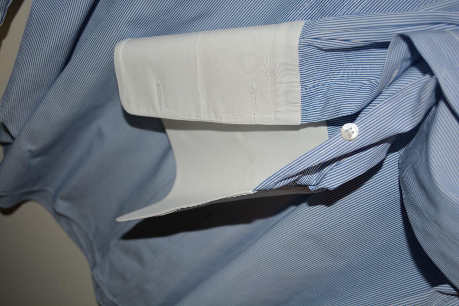 как выглядит 680 Brioni Cotton Dress Shirt 17.5 36 Contrast Blue White Striped Italy Slim Ft фото