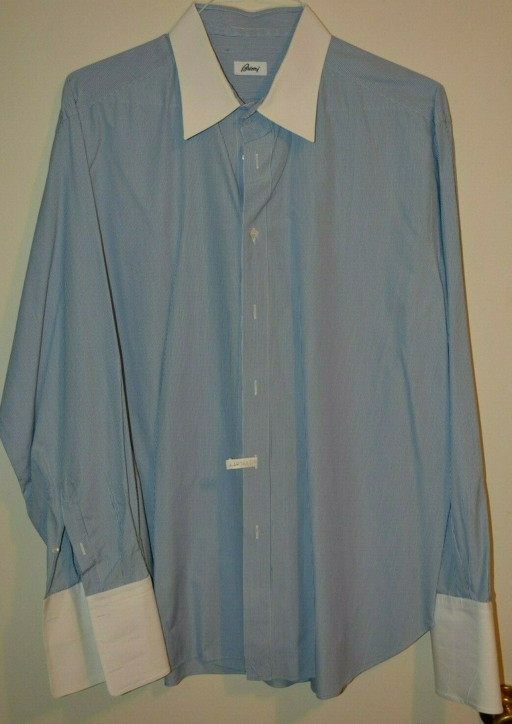 680 Brioni Cotton Dress Shirt 17.5 36 Contrast Blue White Striped Italy Slim Ft