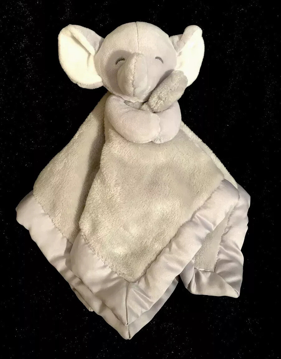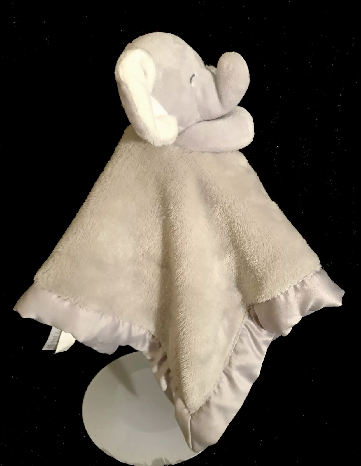 Carters Gray Elephant Soft Plush Baby Lovey Security Blanket Satin Trim 14 x14