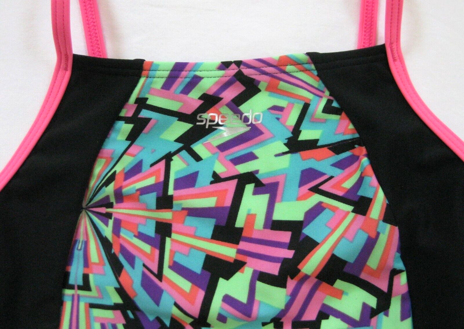 NEW Girls Speedo Swimsuit One Piece Pink Black Multi Color UPF 50 Size XS 5/6