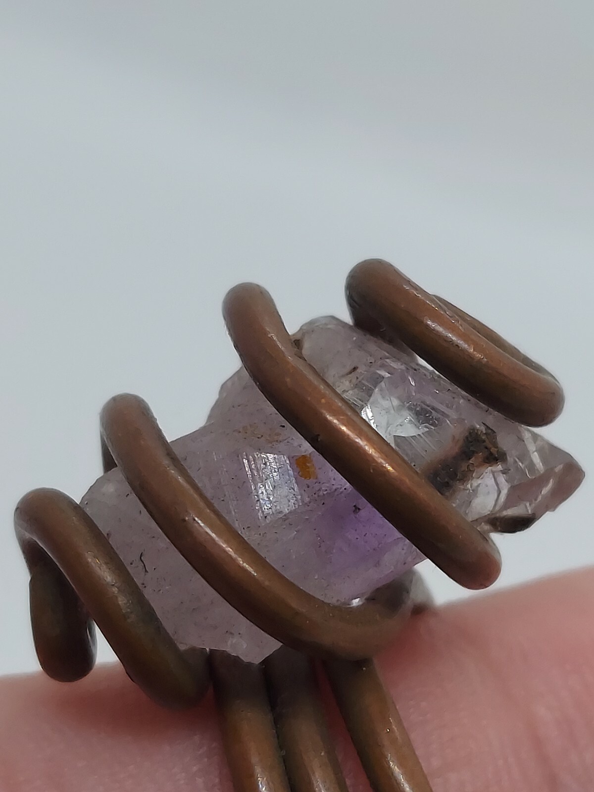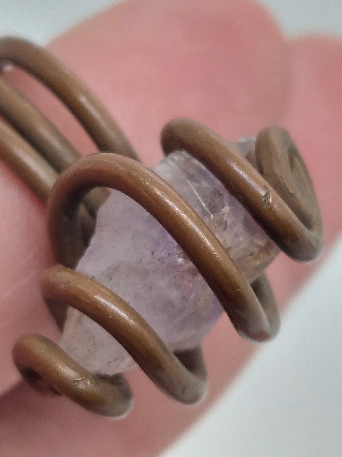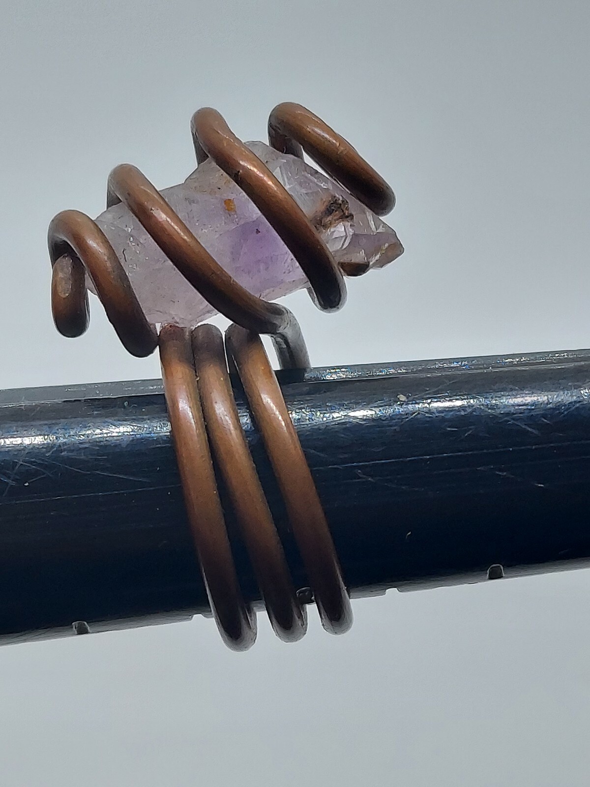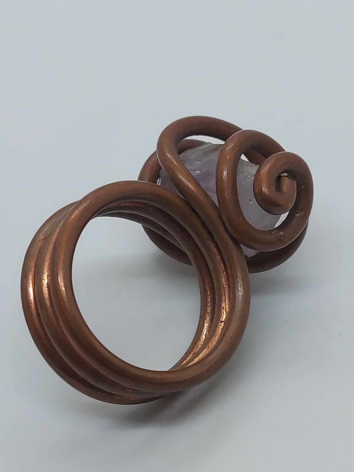 как выглядит Copper Wire Amethyst Crystal Handcrafted Ring Size 6 фото