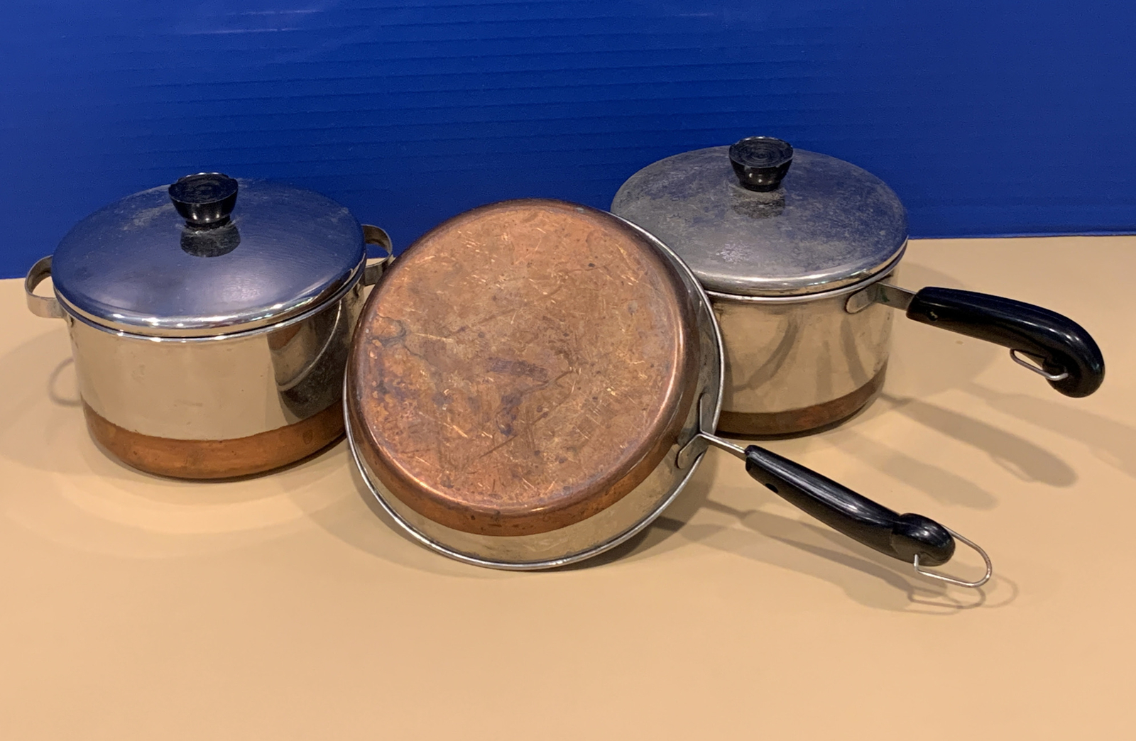 Miniature Kids Copper Bottom Pots And Pan Set - 3 Pc Aluminum