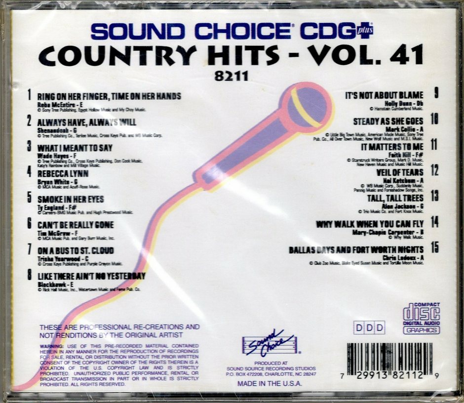 SOUND CHOICE KARAOKE SPOTLIGHT SERIES CD G - SC8211 Vol 41 Country Hits