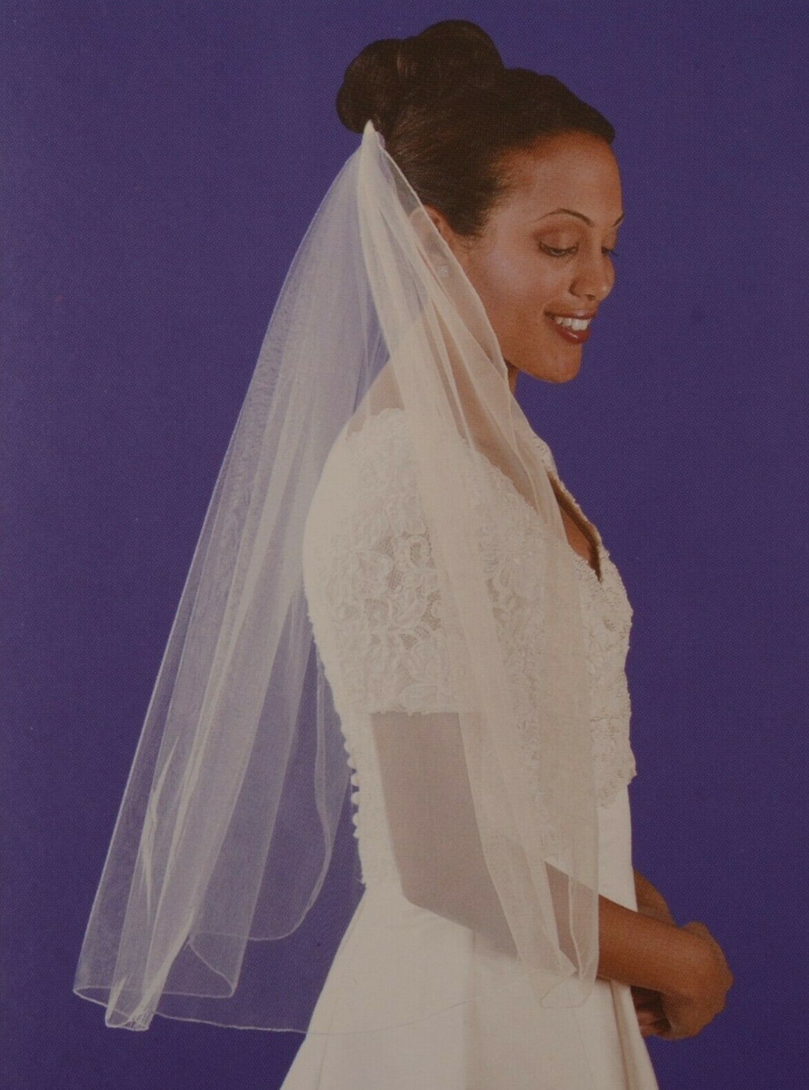 WILTON Rolled Edge Single Layer Bridal Veil, Ivory, 37 Long x 60 Wide