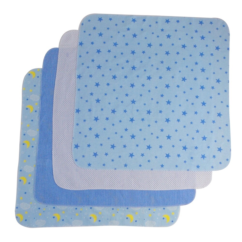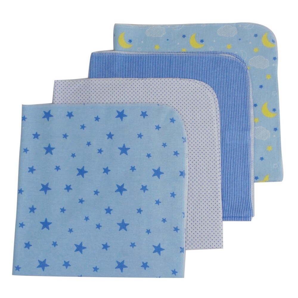 Blue Flannel Receiving Blanket 4-Pack Cotton Baby Blankets Assorted Prints