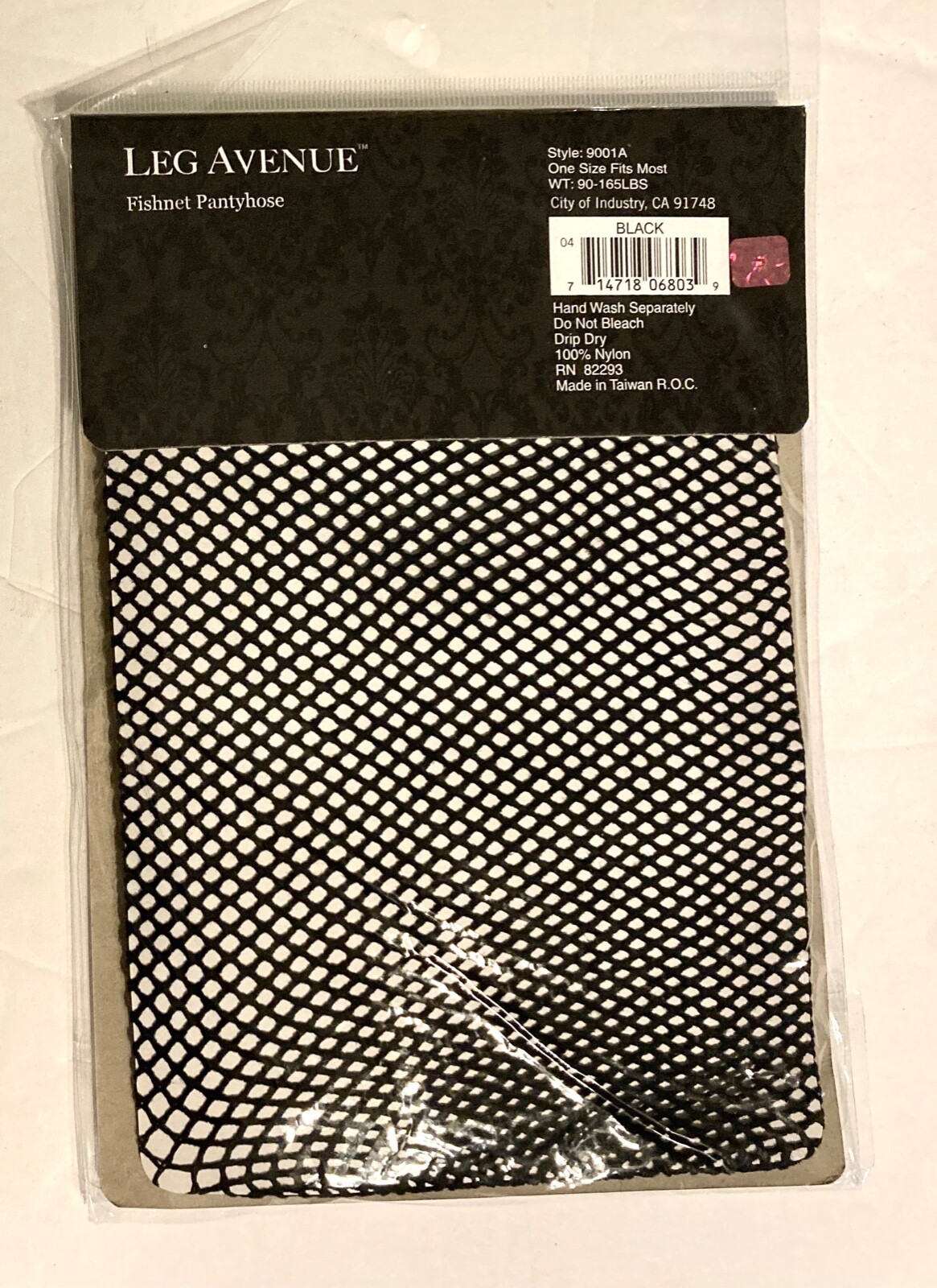 Leg Avenue Black Fishnet Pantyhose Style 9001A, 90-165, One Size Fits Most -New