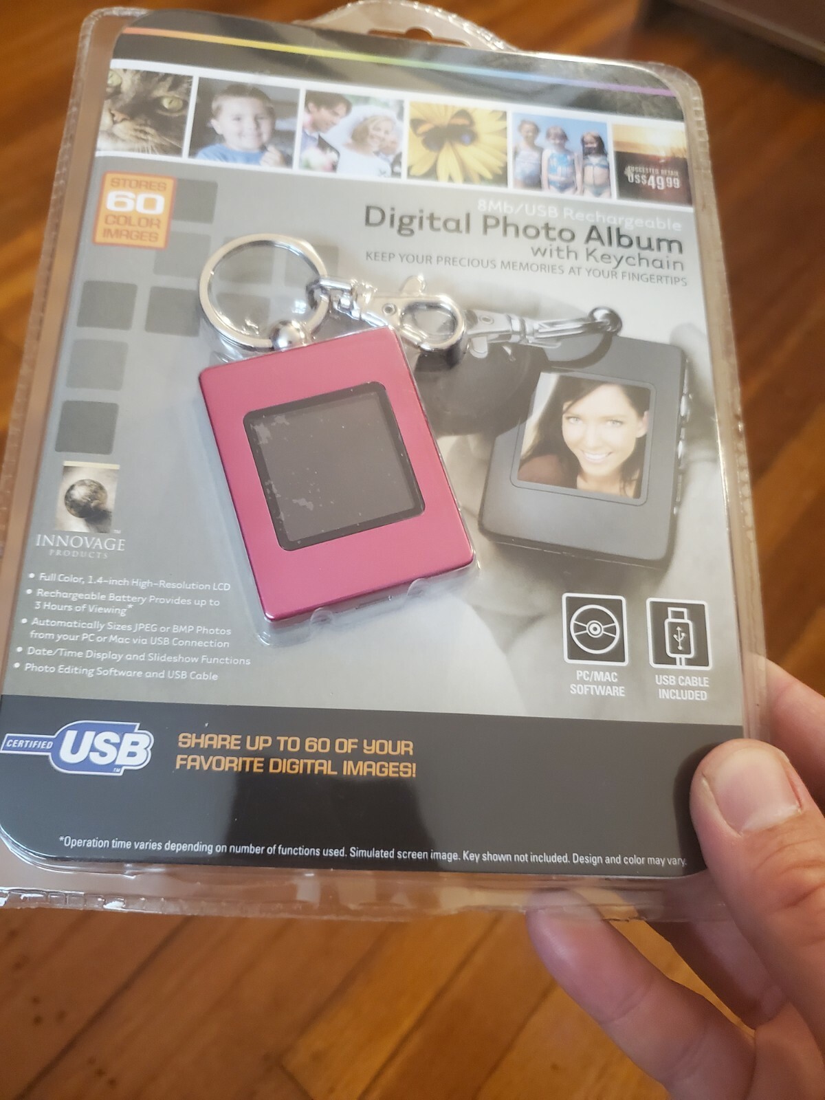 Innovage Digital Photo Album with Keychain Stores 60 Color Images, Pink - New