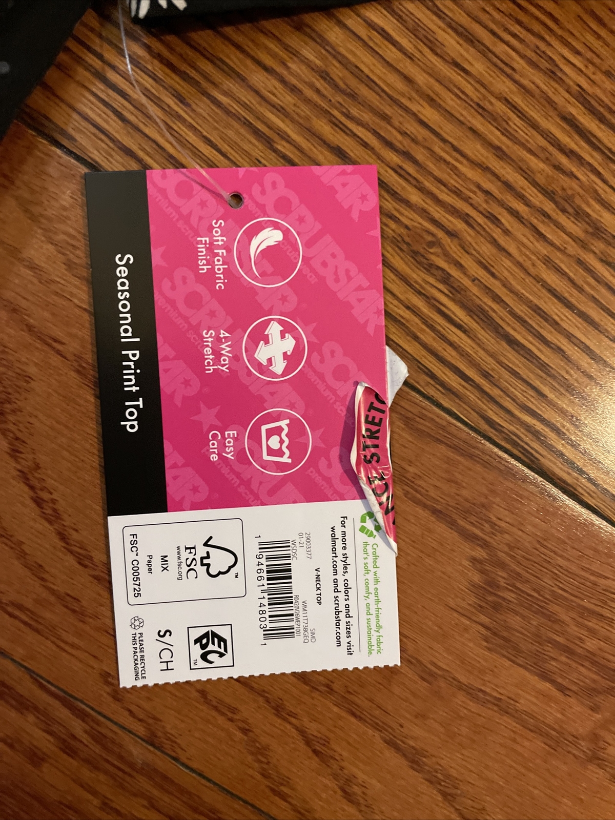 NWT Womens ScrubStar Black Flower Print Pull Over V Neck Scrub Top Shirt Sz Sm