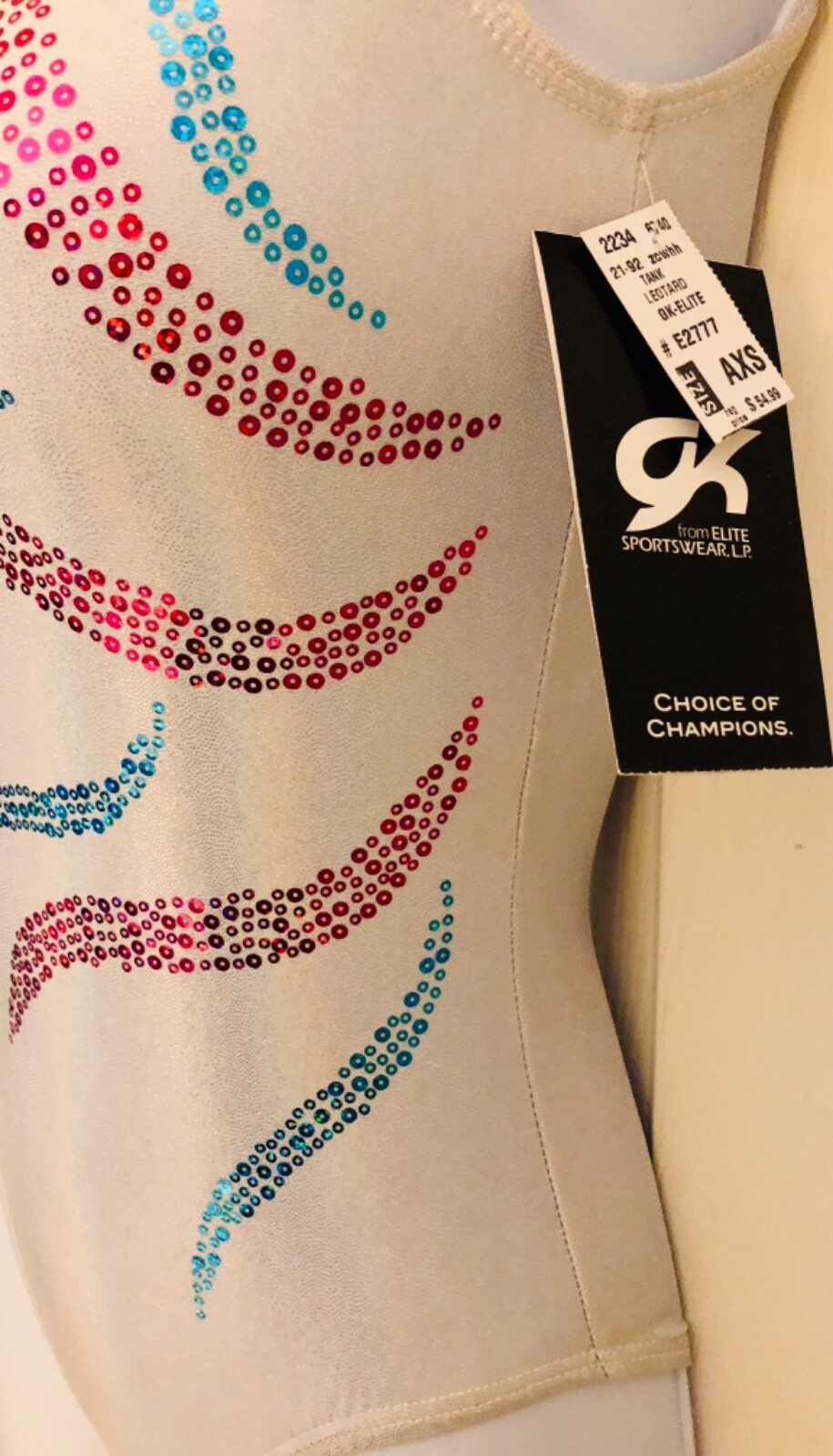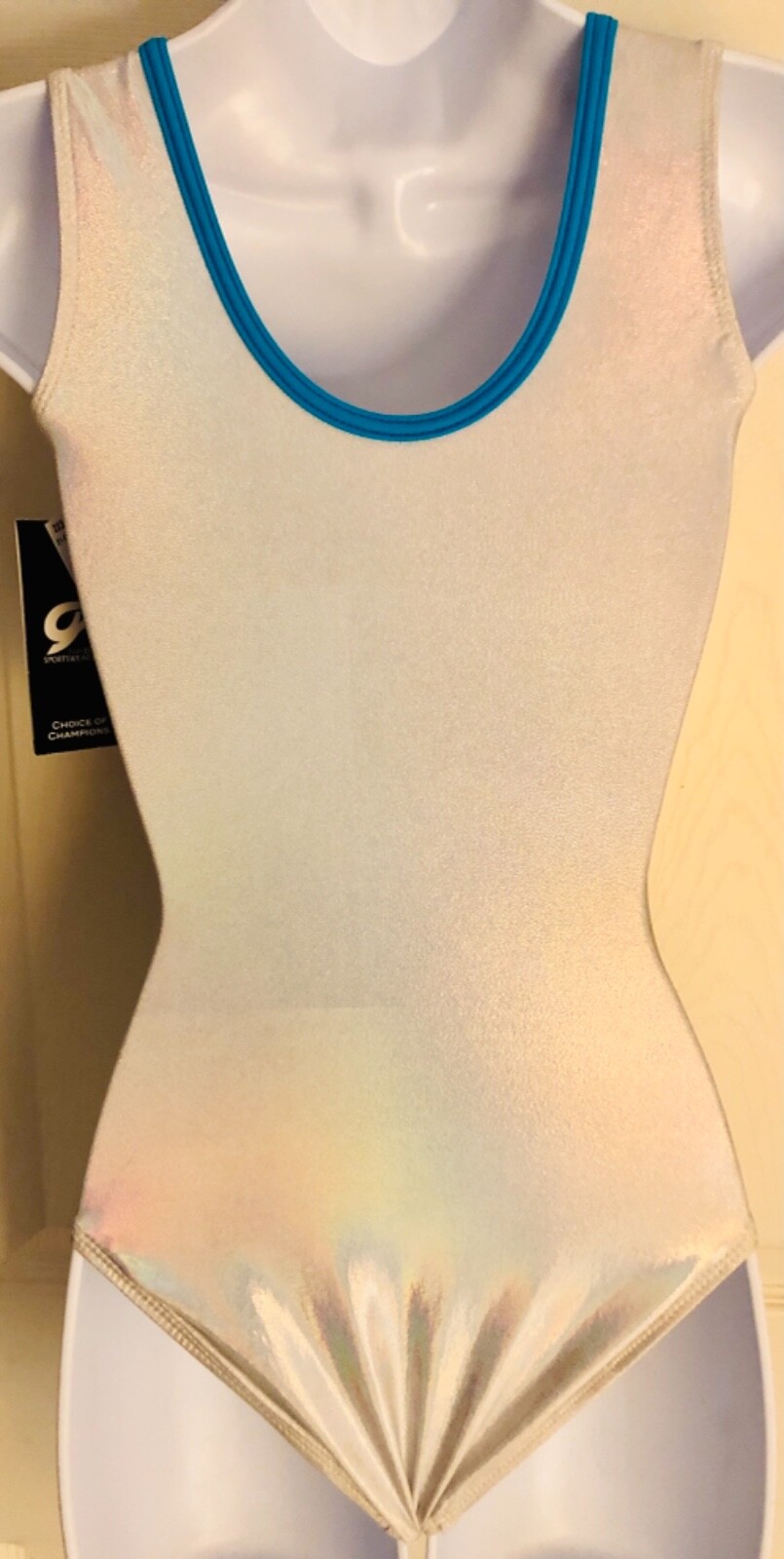 GK OPAL ILLUSION ADULT X-SMALL WHITE OPAL BLUE SEQ GYMNASTICS DANCE LEOTARD AXS